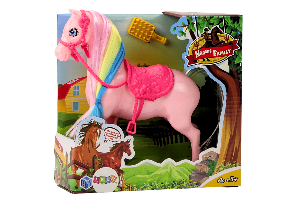 Ten kolorowy konik to doskonały prezent dla każdego małego miłośnika koni. Jego barwna grzywa i ogon zachęcają do kreatywnej zabawy, inspirując dzieci do tworzenia wielu fascynujących historii i przygód. Dołączona różowa szczotka pozwala na dbanie o piękno swojego ulubieńca, co dodatkowo uczy dziecko odpowiedzialności i troski o swoje zabawki. Wybierz swój ulubiony kolor i ciesz się nieskończonymi godzinami radości z nowym przyjacielem, który z pewnością stanie się niezastąpionym towarzyszem każdego dnia.
