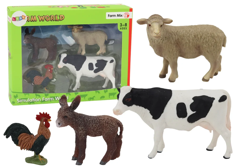 Zestaw Figurek Zwierzęta Wiejskie Farma 4 Sztuki Krowa Kogut Osioł Owca