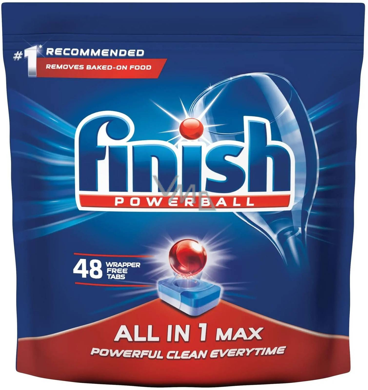 Tabletki do zmywarek Finish Powerball All in 1 Max to wszechstronny produkt, który skutecznie radzi sobie z zabrudzeniami w 10 różnych obszarach. Dzięki nim z łatwością usuniesz uporczywe plamy tłuszczu oraz osady z kawy i herbaty. Oferują również ochronę filtrów zmywarki oraz szkła, a także zapobiegają osadzaniu się kamienia. Działają efektywnie nawet w niskich temperaturach, pełniąc jednocześnie funkcje soli i nabłyszczacza.