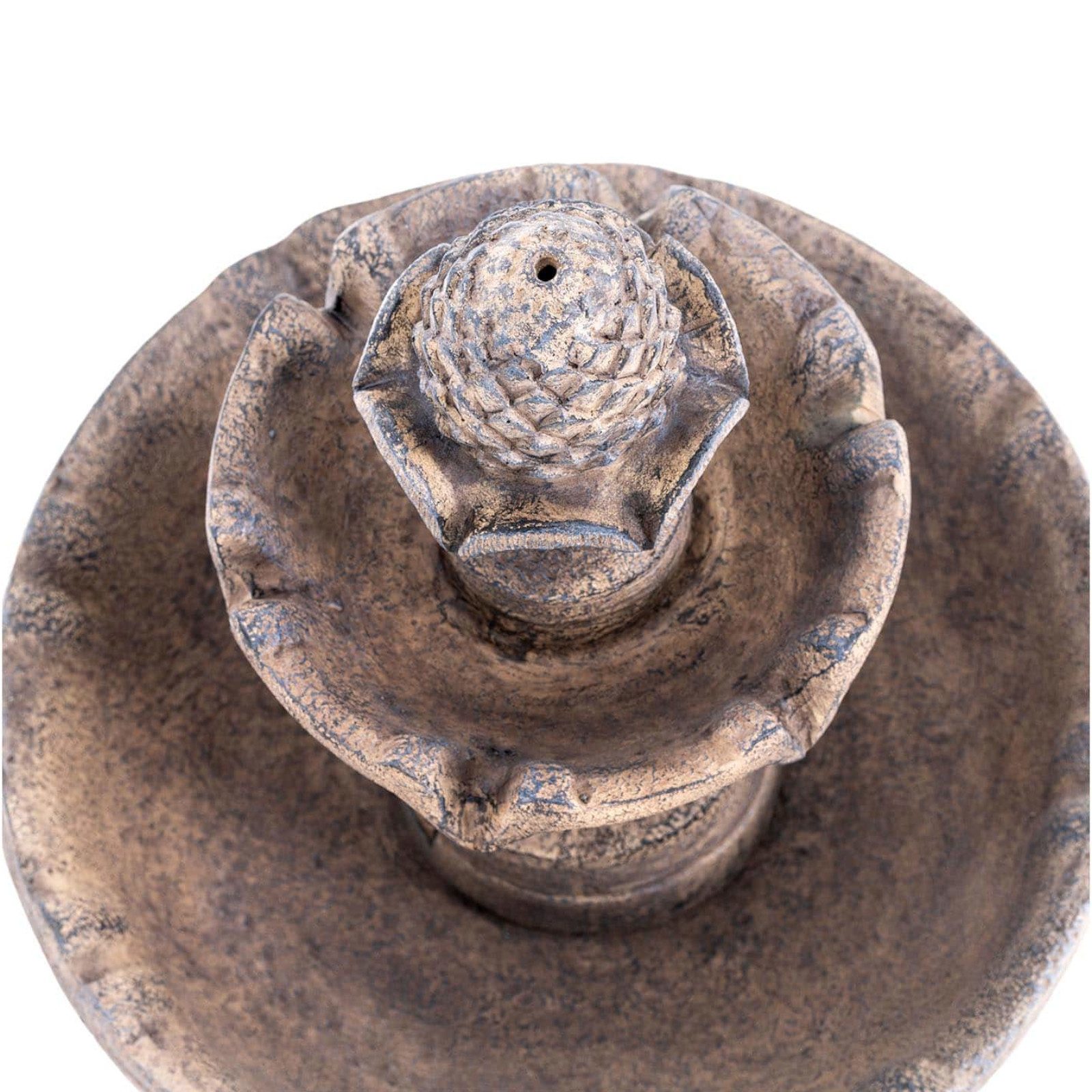 Przywitaj się z elegancją i harmonią w swoim ogrodzie dzięki fontannie kaskadowej. Jej wyjątkowy design z dwoma poziomami oraz szyszką na szczycie tworzy niepowtarzalną atmosferę, w której szum wody wprawia w relaks.