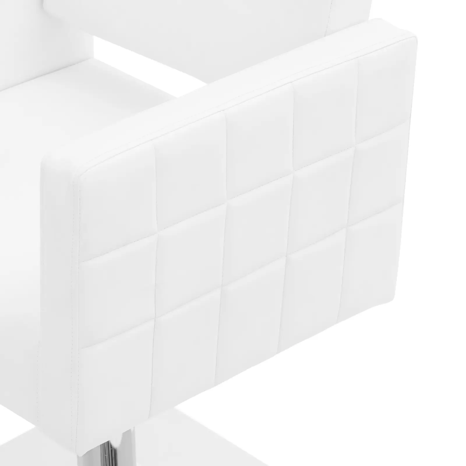 Fotel fryzjerski barberski i kosmetyczny z podnóżkiem Physa RIBBLETON - biały to doskonały wybór dla profesjonalnych salonów fryzjerskich, tatuażu oraz gabinetów kosmetycznych. Dzięki swojemu ergonomicznemu designowi oraz wysokim podłokietnikom, zapewnia maksymalny komfort podczas każdej sesji.