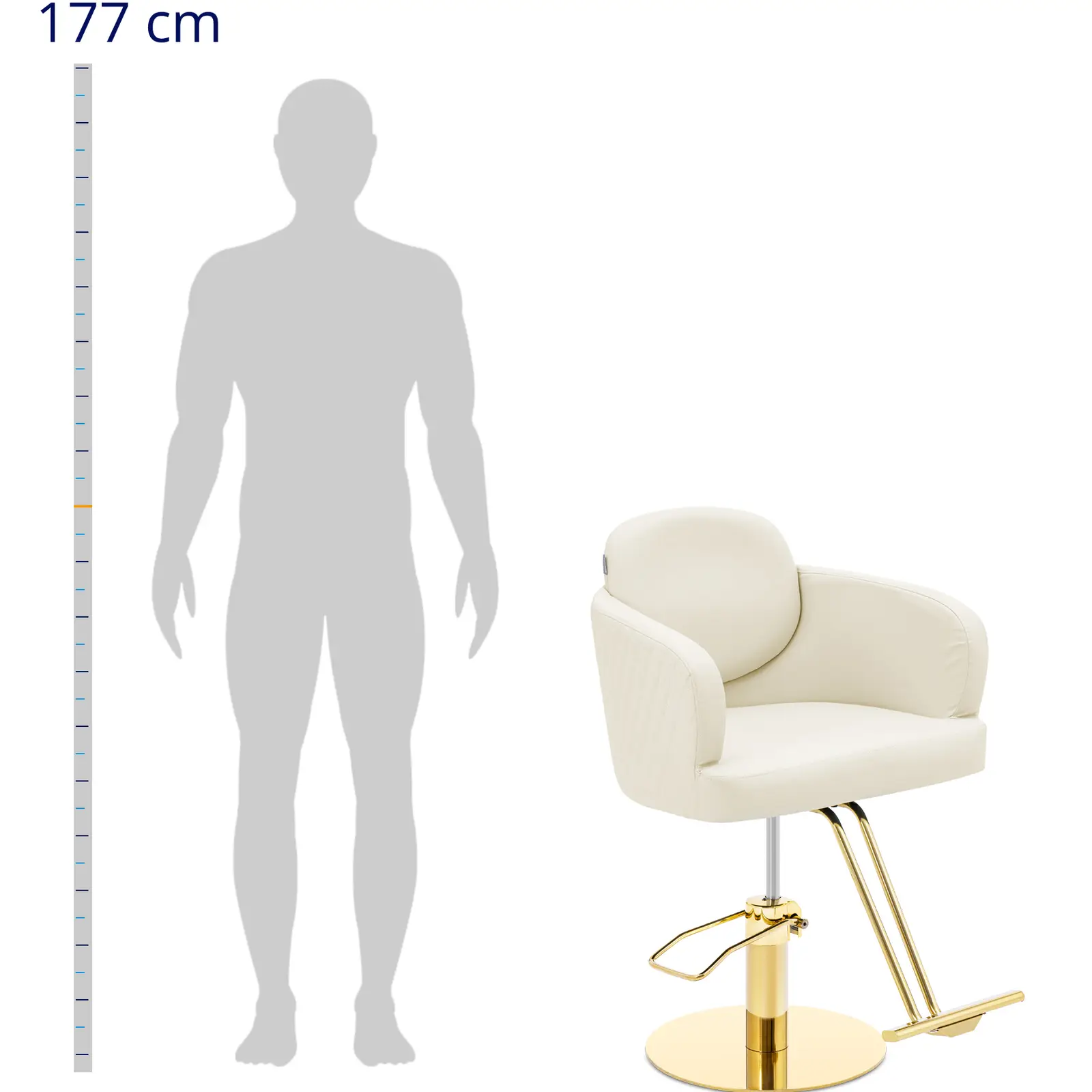 Fotel Fryzjerski Barberski Kosmetyczny z Podnóżkiem Physa WINSFORD - Kremowo - Złoty to doskonały wybór dla każdego salonu fryzjerskiego, tatuażu oraz gabinetu kosmetycznego. Jego elegancka kolorystyka w odcieniach kremu i złota sprawia, że doskonale wpasowuje się w różne style aranżacji wnętrz.