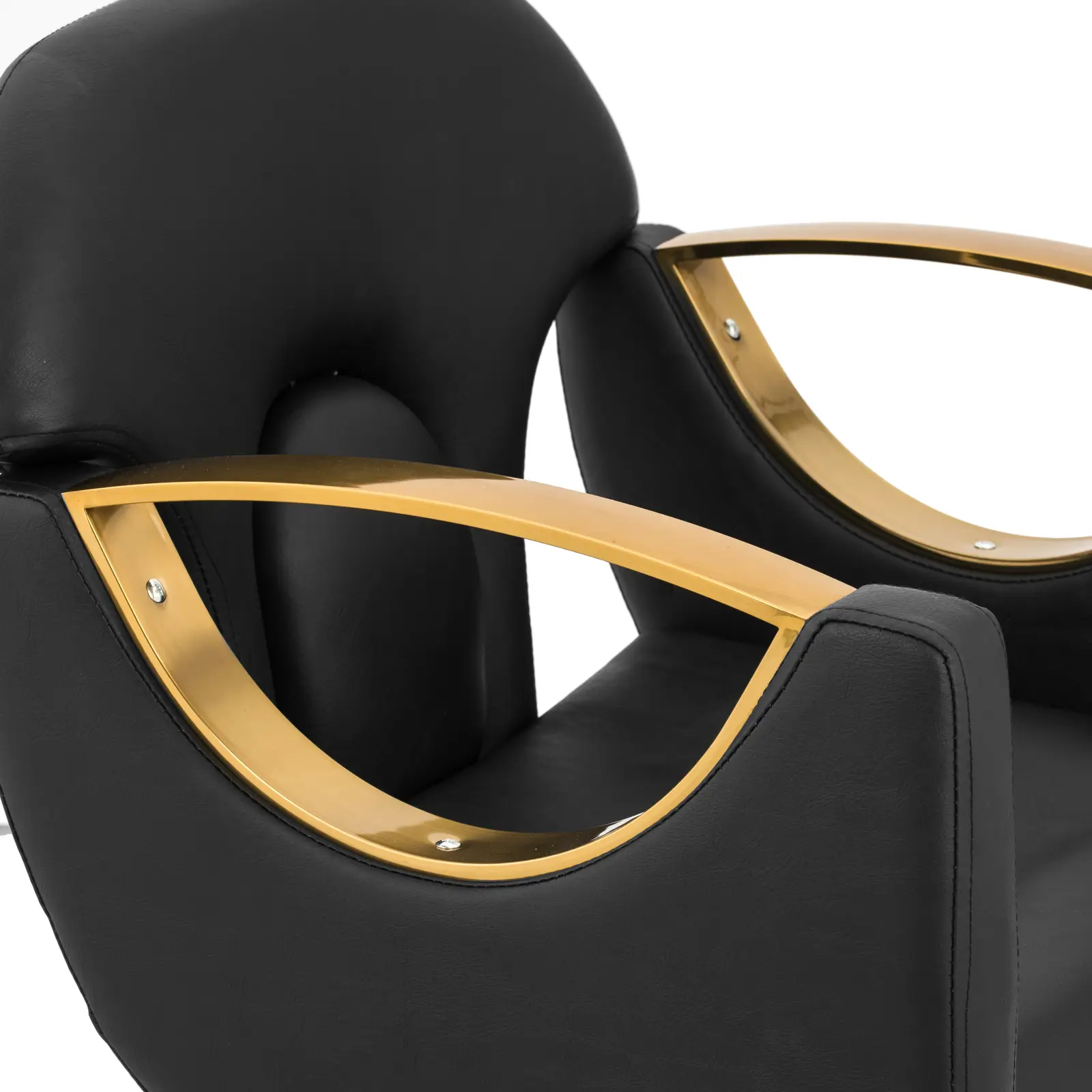 Fotel fryzjerski BARTON BLACK to doskonały wybór dla każdego salonu fryzjerskiego. Jego elegancki czarny kolor oraz nowoczesny design sprawiają, że wpasuje się w różnorodne aranżacje wnętrz, tworząc stylową atmosferę dla klientów.