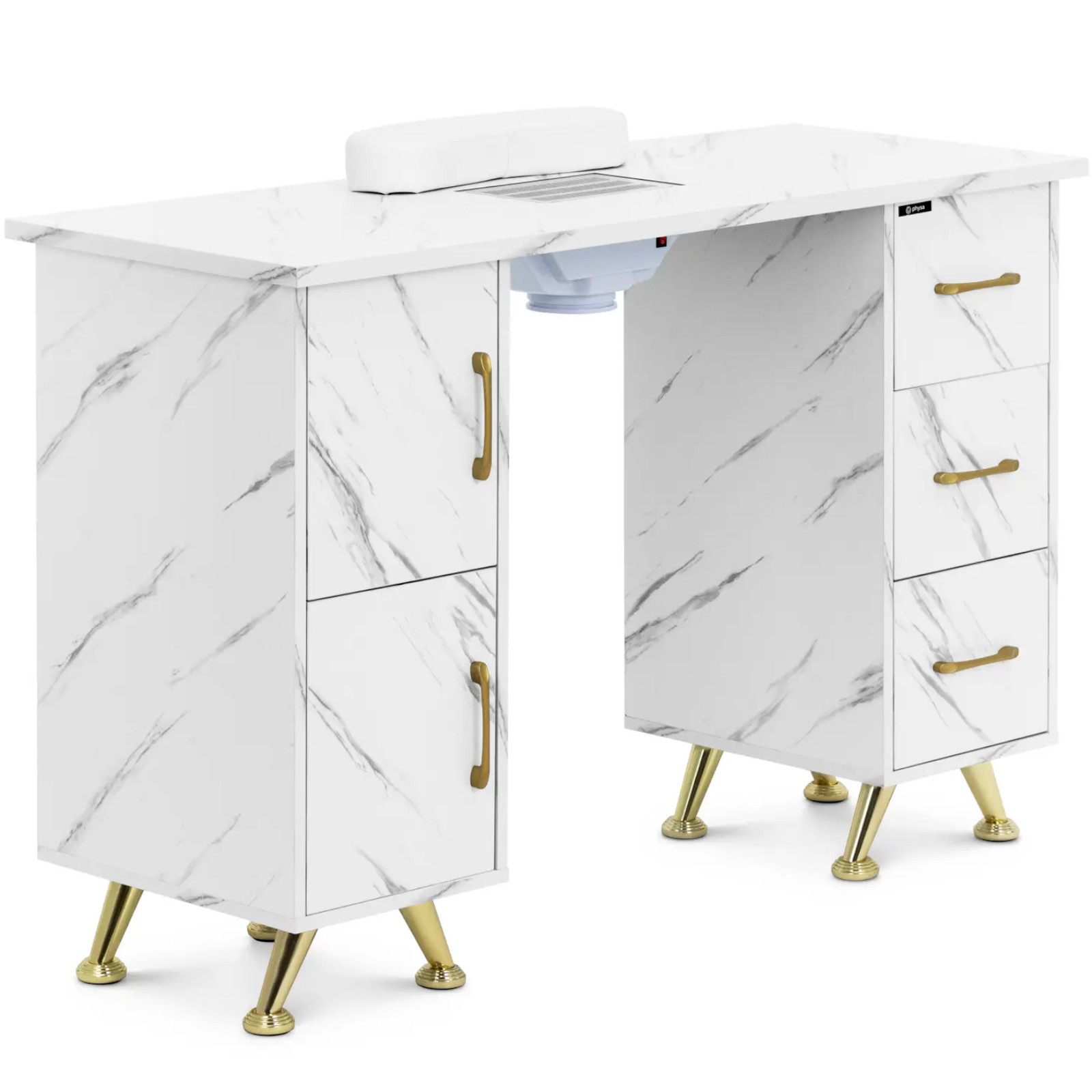 Biurko kosmetyczne do manicure z pochłaniaczem 3 szuflady 2 szafki - marmurowo złote