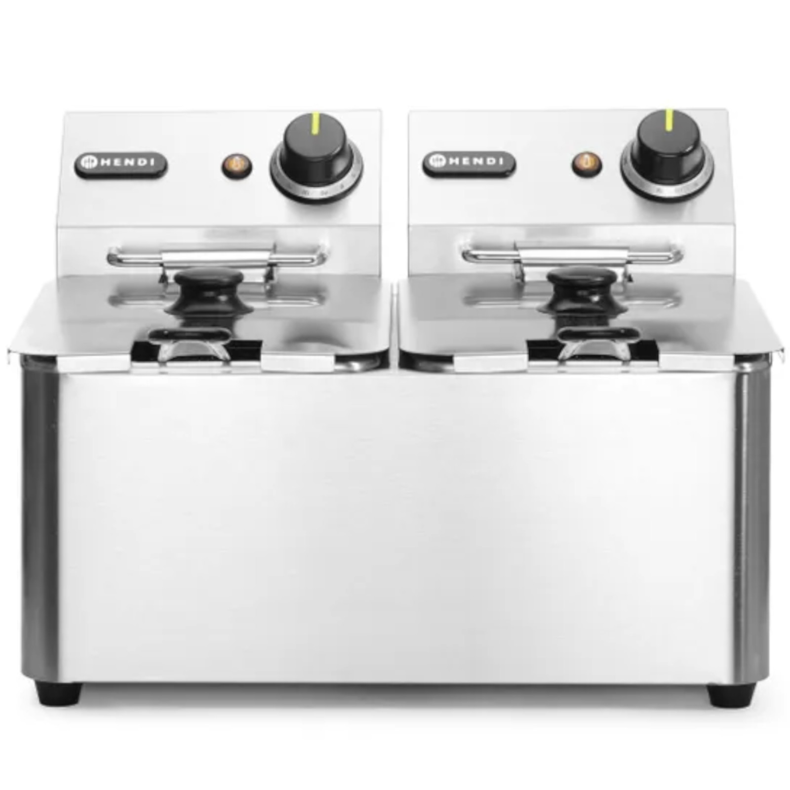 Frytownica z serii Kitchen Line to świetne rozwiązanie do użytku komercyjnego. Umożliwia szybkie i efektywne smażenie różnych produktów spożywczych, takich jak frytki.