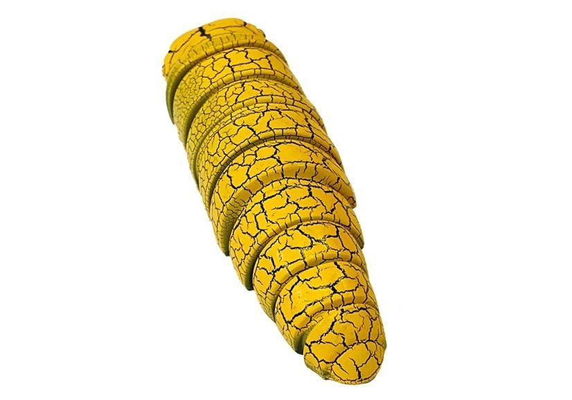 Kolorowa gąsienica przychodzi w przezroczystym opakowaniu w kształcie kopułki, dzięki czemu nadaje się ono również na gablotkę, w której możesz eksponować swojego pupila, kiedy się nim nie bawisz.