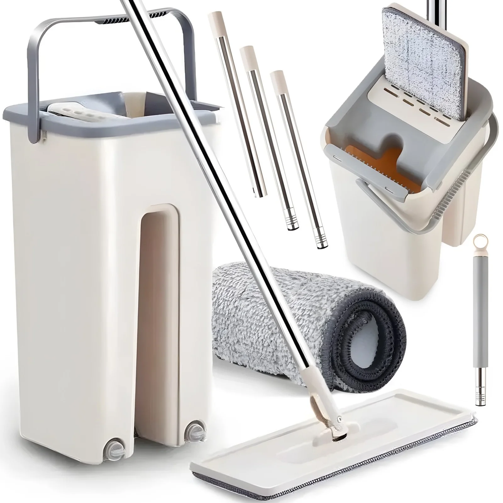 Mop płaski z wiadrem dwukomorowym wyciskaczem 2 wkłady 2x 4.5 l