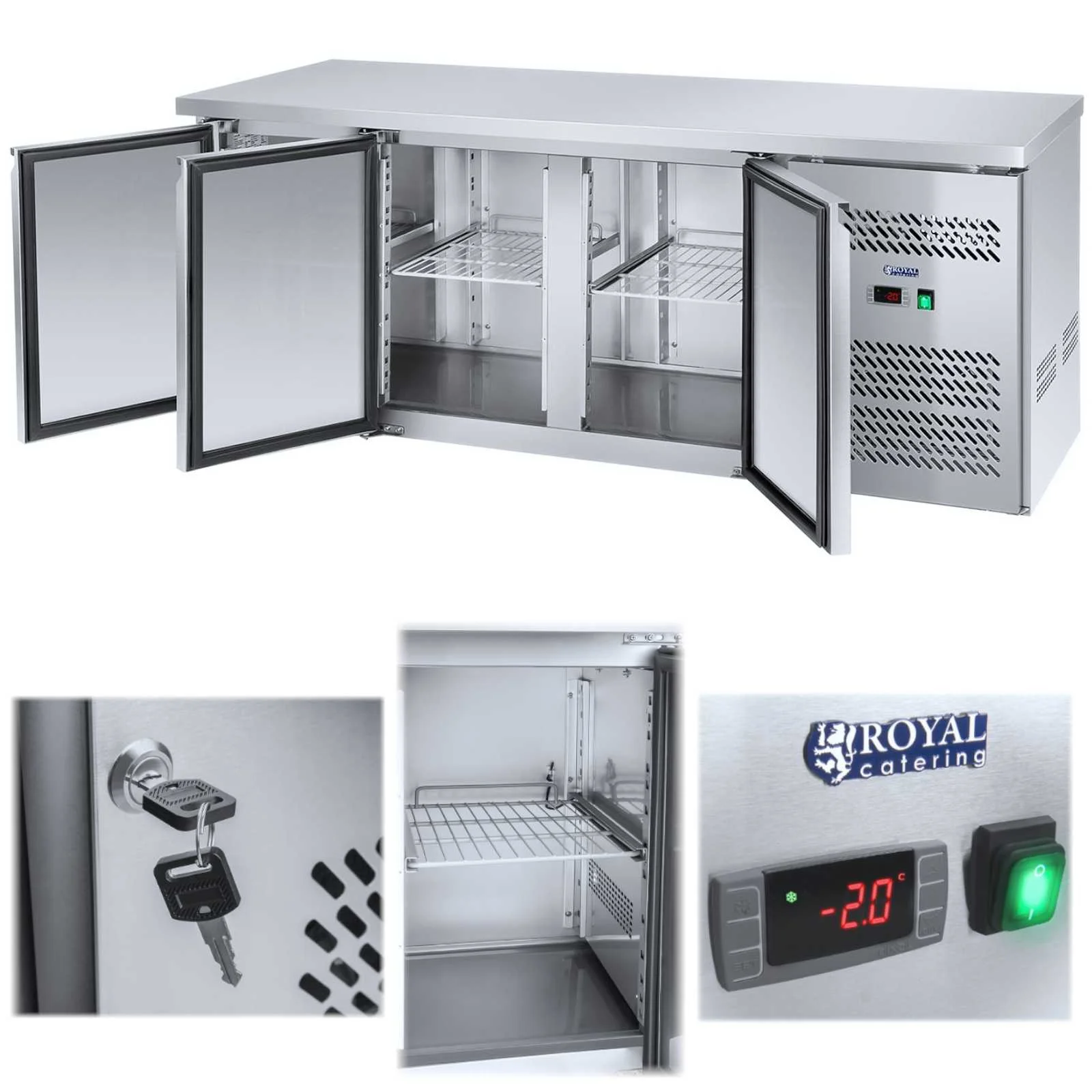 Stół chłodniczy 3-drzwiowy z blatem roboczym ze stali nierdzewnej od -2 do 8deg;C 339L
