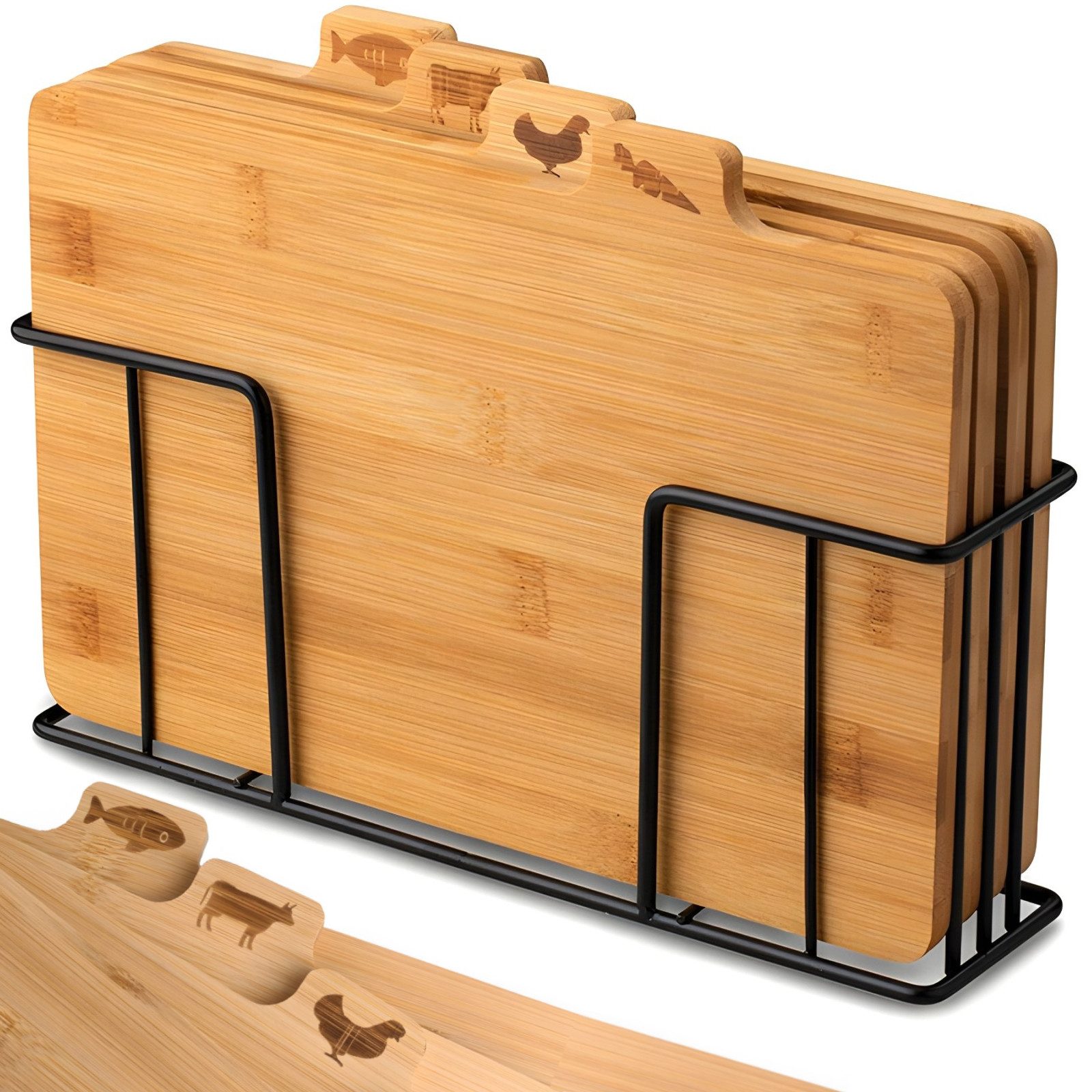 Zestaw desek kuchennych bambusowych ze stojakiem - 4 szt.