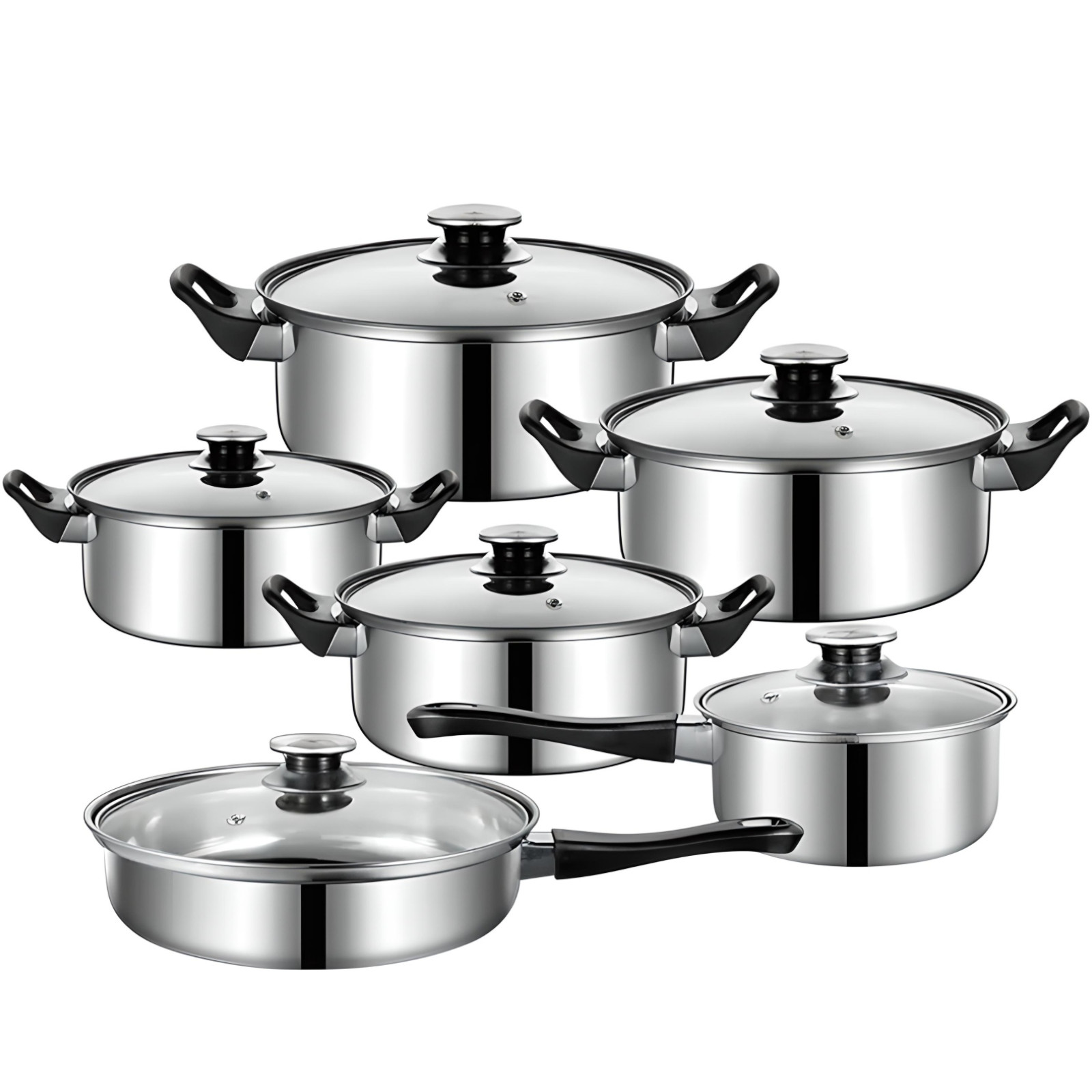 Zestaw garnków stalowych z pokrywkami patelnią - 12 el.