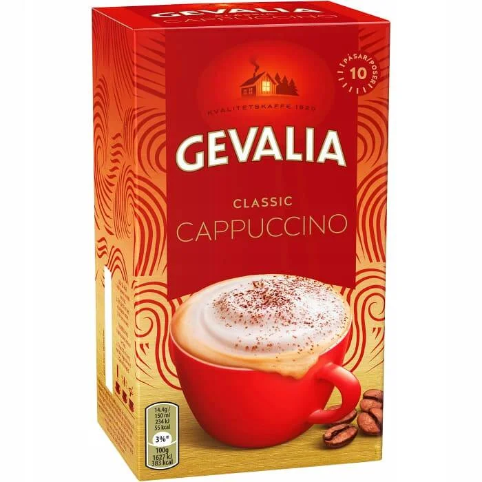 Gevalia Cappuccino Classic to doskonały wybór dla miłośników kremowego cappuccino. Ten aromatyczny napój zachwyca swoją gęstą i trwałą pianką, która utrzymuje się przez długi czas po przygotowaniu. Dzięki prostej i szybkiej metodzie przygotowania – wystarczy dodać gorącą wodę, zamieszać i gotowe – możesz cieszyć się wyjątkowym smakiem klasycznego cappuccino w zaciszu własnego domu.