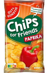 Chipsy Paprykowe ważą 200 g, co sprawia, że są wygodne do podania na stół. Wartości odżywcze na 100 g to: 544 kcal, 34 g tłuszczu, 52 g węglowodanów, 5,8 g białka oraz tylko 1,6 g soli. To doskonały wybór na każdą okazję.