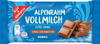 Składniki: cukier, masło kakaowe, miazga kakaowa, 11% pełne mleko w proszku, 6,0% śmietanka w proszku, słodka serwatka w proszku, czyste tłuszcze masłowe, emulgator: lecytyny (zawiera soję); naturalny aromat waniliowy. Produkt może zawierać śladowe ilości glutenu i orzechów.