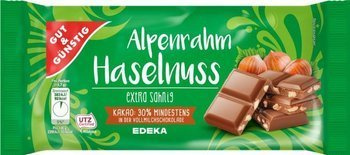 Składniki: cukier, masło kakaowe, miazga kakaowa, 12% kawałków orzechów laskowych, pełne mleko w proszku, śmietana w proszku, serwatka, tłuszcz masłowy, emulgator: lecytyny; naturalny aromat waniliowy. Produkt może zawierać śladowe ilości soi.