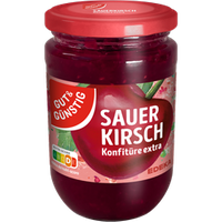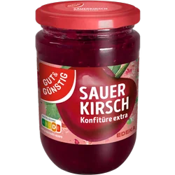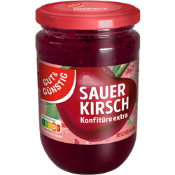 Skład: wiśnie 50%, cukier, syrop glukozowo-fruktozowy, kwas cytrynowy, pektyny.