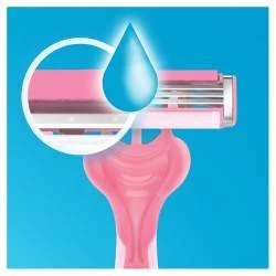 Maszynka do golenia dla kobiet Gillette Simply Venus zapewnia dokładne golenie, minimalizując ryzyko skaleczeń i zacięć. Dzięki ruchomej główce, dotarcie do trudno dostępnych miejsc staje się prostsze. Pasek nawilżający z aloesem zwiększa poślizg, co wpływa na komfort golenia.