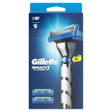 Mach3 Turbo od Gillette posiada jeszcze skuteczniejsze ostrza, które zapewniają gładki poślizg po skórze. Wyjątkowo twarde ostrza długo zachowują ostrość, a rączka 3D odpowiednio dopasowuje się do konturów twarzy, dzięki czemu golenie jest precyzyjne i bezproblemowe. Charakterystyczny dla serii Mach3 Turbo niebieski pasek nawilżający jest bardzo trwały i wykazuje intensywne działanie podczas golenia.