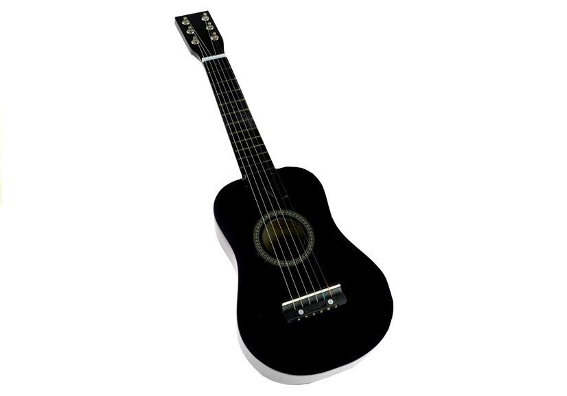 Gitara drewniana 60 CM w kolorze czarnym. Ta niesamowita gitara to prawdziwy instrument muzyczny dla Twojej pociechy. Od rzeczywistej gitary różni się rozmiarami, które są tutaj dostosowane do potrzeb małego dziecka. Staranne wykonanie, z lakierowanego drewna oraz możliwość strojenia sześciostrunowej gitary za pomocą specjalnych naciągów, pozwala na oddawanie realnych dźwięków i tworzenie pięknej muzyki. Twój młody muzyk będzie zachwycony ta gitarką.