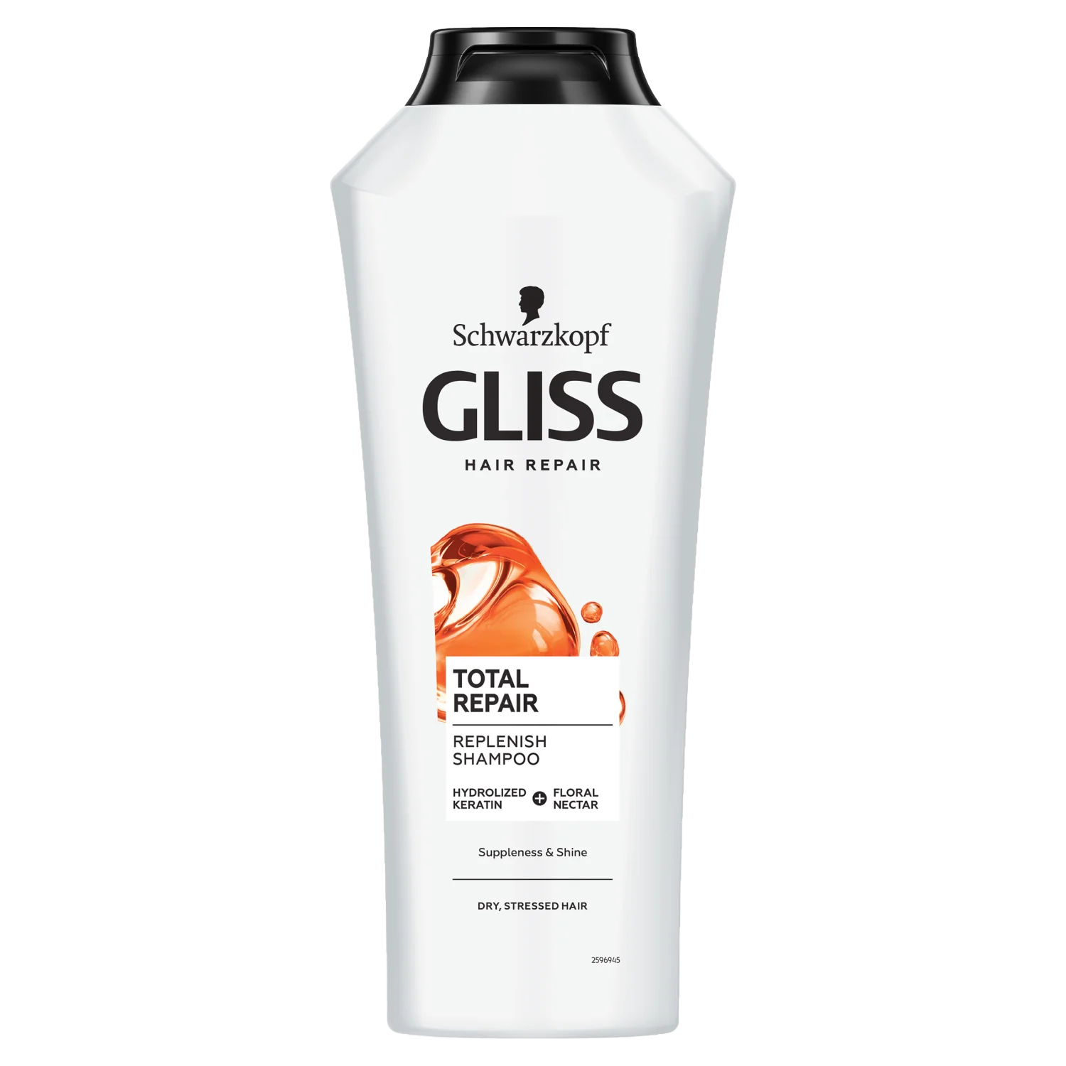 Odkryj skuteczną naprawę dla swoich włosów z szamponem Gliss Total Repair. Ten produkt o pojemności 250 ml jest idealny dla suchych i zniszczonych włosów. Dzięki płynnej keratynie oraz nektarowi kwiatowemu, szampon nie tylko wygładza powierzchnię włosów, ale również poprawia ich strukturę, nadając im zdrowy wygląd.
