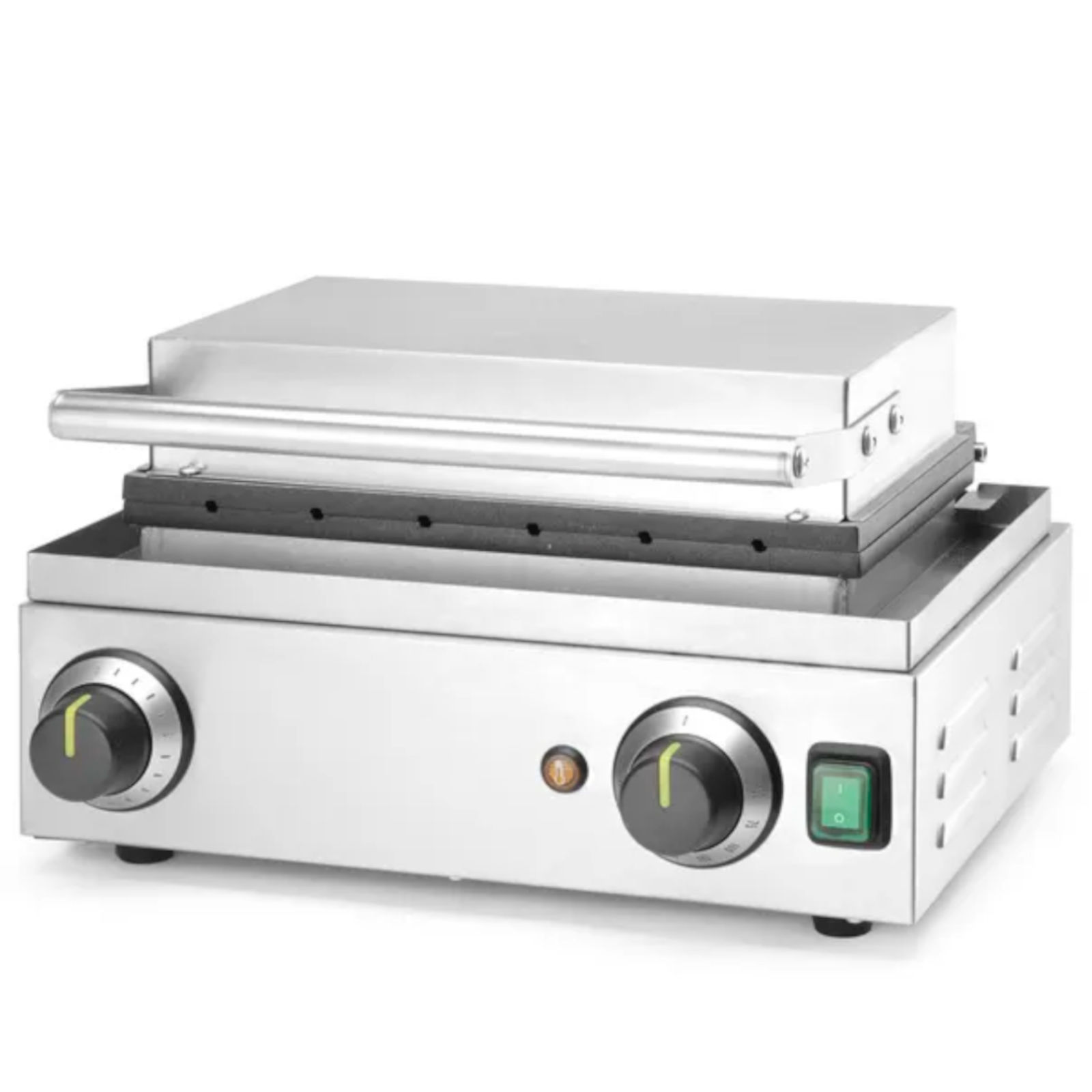 Gofrownica umożliwia jednoczesne pieczenie 6 gofrów lub corn-dogów, a specjalne żłobienia na patyczki ułatwiają ich przygotowanie. Rynienka ociekowa na nadmiar ciasta sprawia, że utrzymanie czystości w miejscu pracy jest prostsze. Regulacja temperatury odbywa się bezstopniowo w zakresie od 50˚C do 220˚C, a czasomierz umożliwia ustawienie czasu do 15 minut.