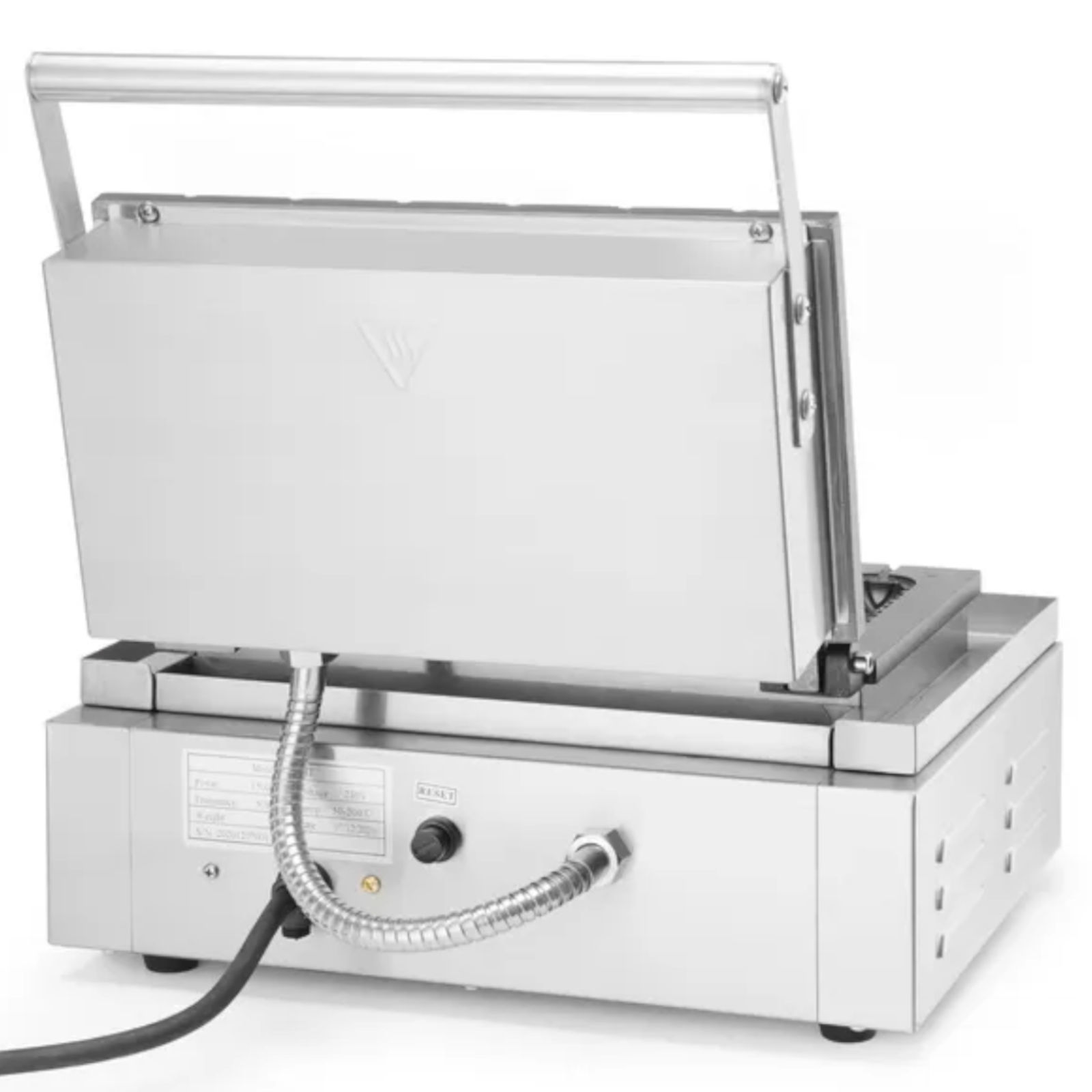 Urządzenie zostało wyposażone w otwory wentylacyjne, co zwiększa bezpieczeństwo użytkowania poprzez ochronę elementów sterujących przed przegrzaniem. Rączka nie nagrzewa się, co zapewnia komfort podczas pracy. Płyta grzewcza z odlewanego aluminium, pokryta powłoką z domieszką tytanu, zapobiega przywieraniu ciasta.