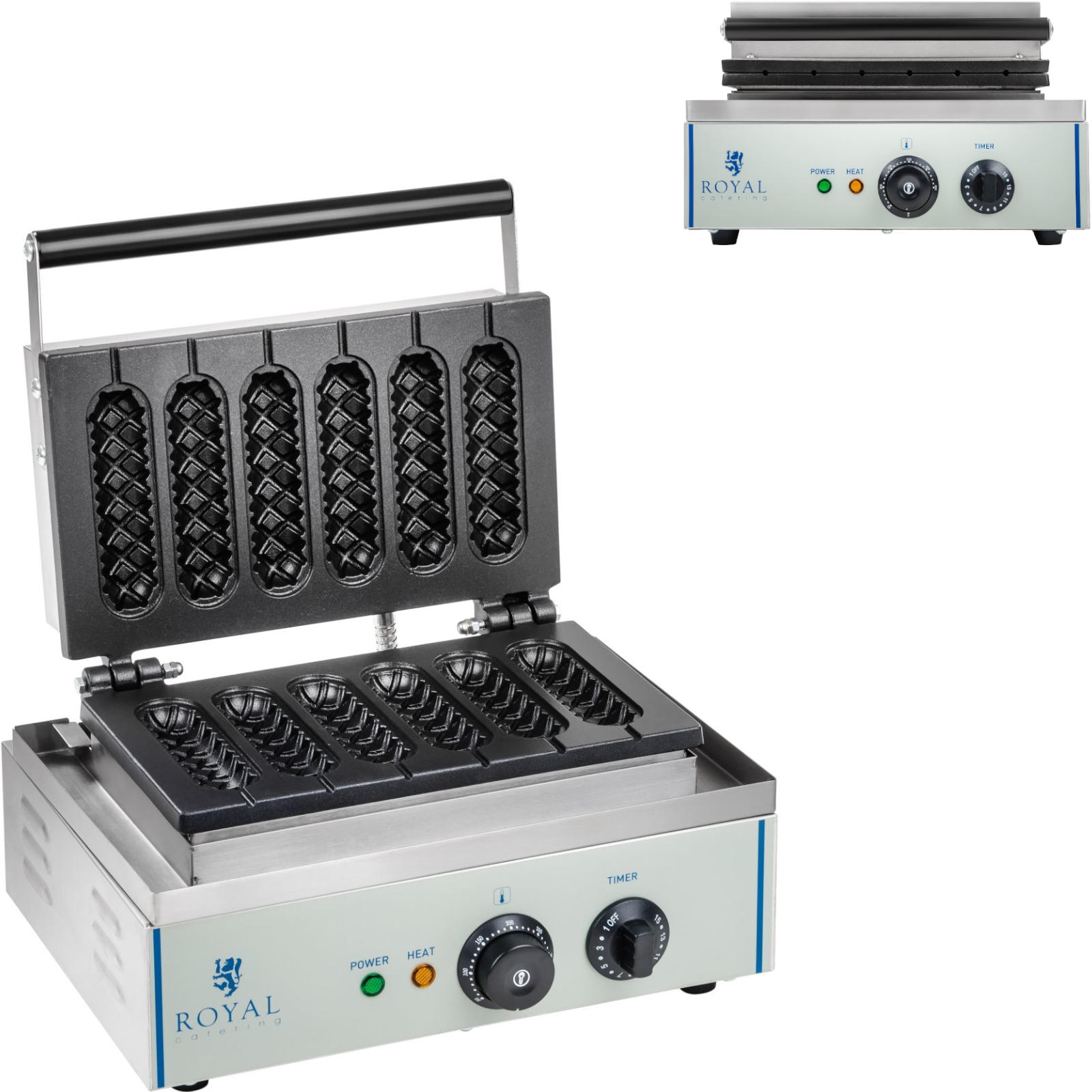 Gofry mają kształt walca o średnicy 4 cm i długości 14 cm, co czyni je idealnymi do serwowania na patyku. Model ten sprawdzi się doskonale w barach, kawiarniach oraz gastronomii obwoźnej.