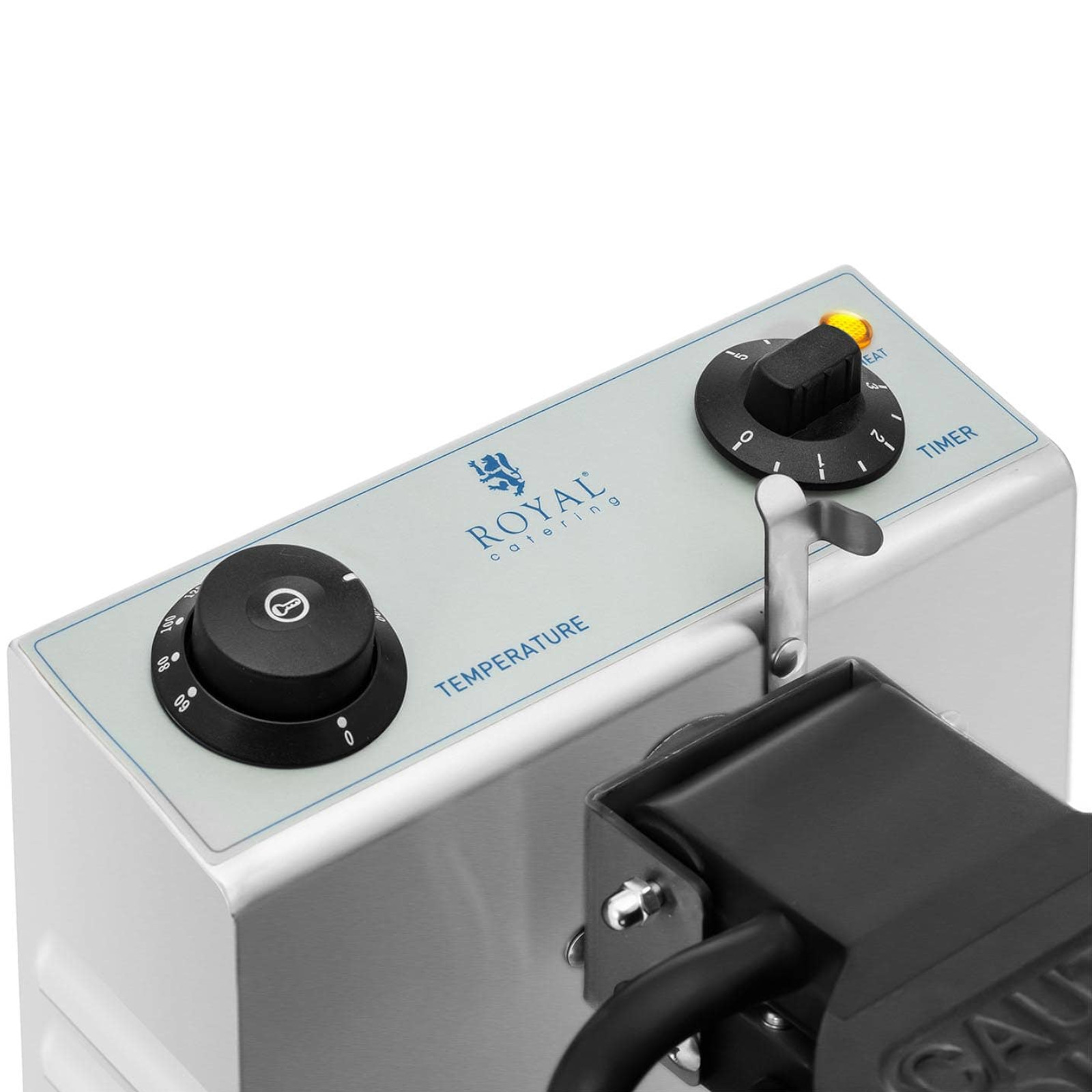 Gofrownica marki Royal Catering to doskonały wybór do przygotowywania chrupiących gofrów w różnych miejscach, takich jak restauracje, kawiarnie czy podczas imprez plenerowych. Dzięki możliwości regulacji temperatury w zakresie od 0 do 200°C oraz timerowi, który można ustawić od 0 do 5 minut, łatwo dostosujesz proces pieczenia do swoich wymagań.