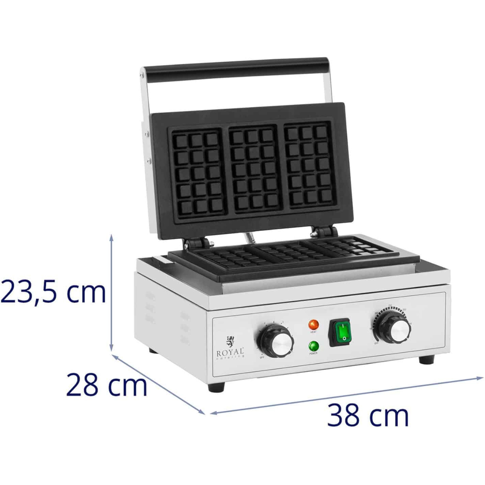 Gofrownica marki Royal Catering to idealne rozwiązanie dla miłośników gofrów. Umożliwia jednoczesne przygotowanie 3 pysznych, chrupiących gofrów o grubości 23 mm. Dzięki mocy 1500 W, urządzenie szybko się nagrzewa, co znacząco przyspiesza proces wypiekania.