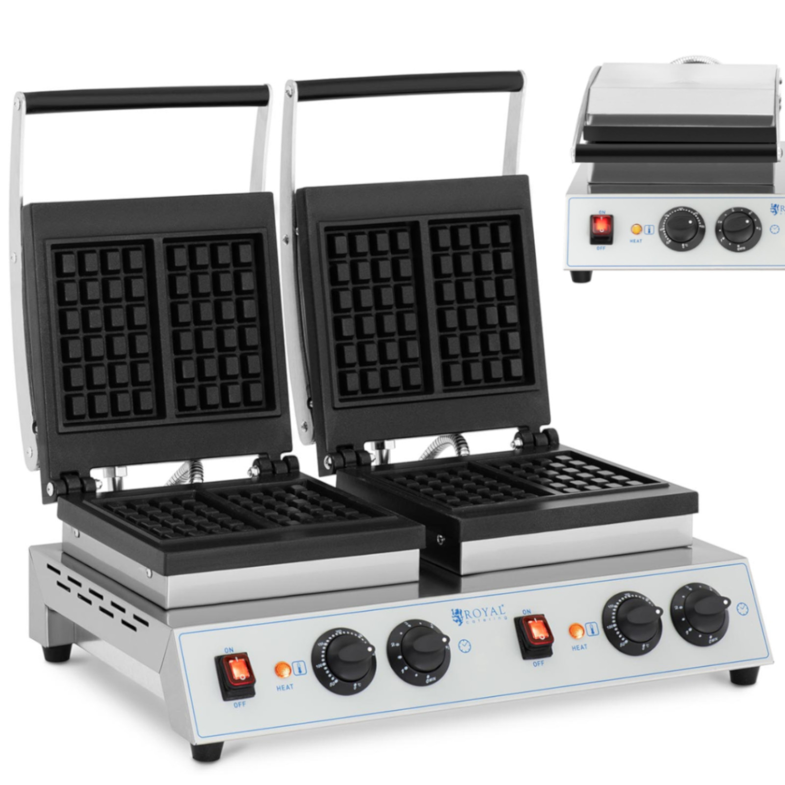 Gofrownica prostokątna podwójna na 4 gofry belgijskie 2 x 2000 W