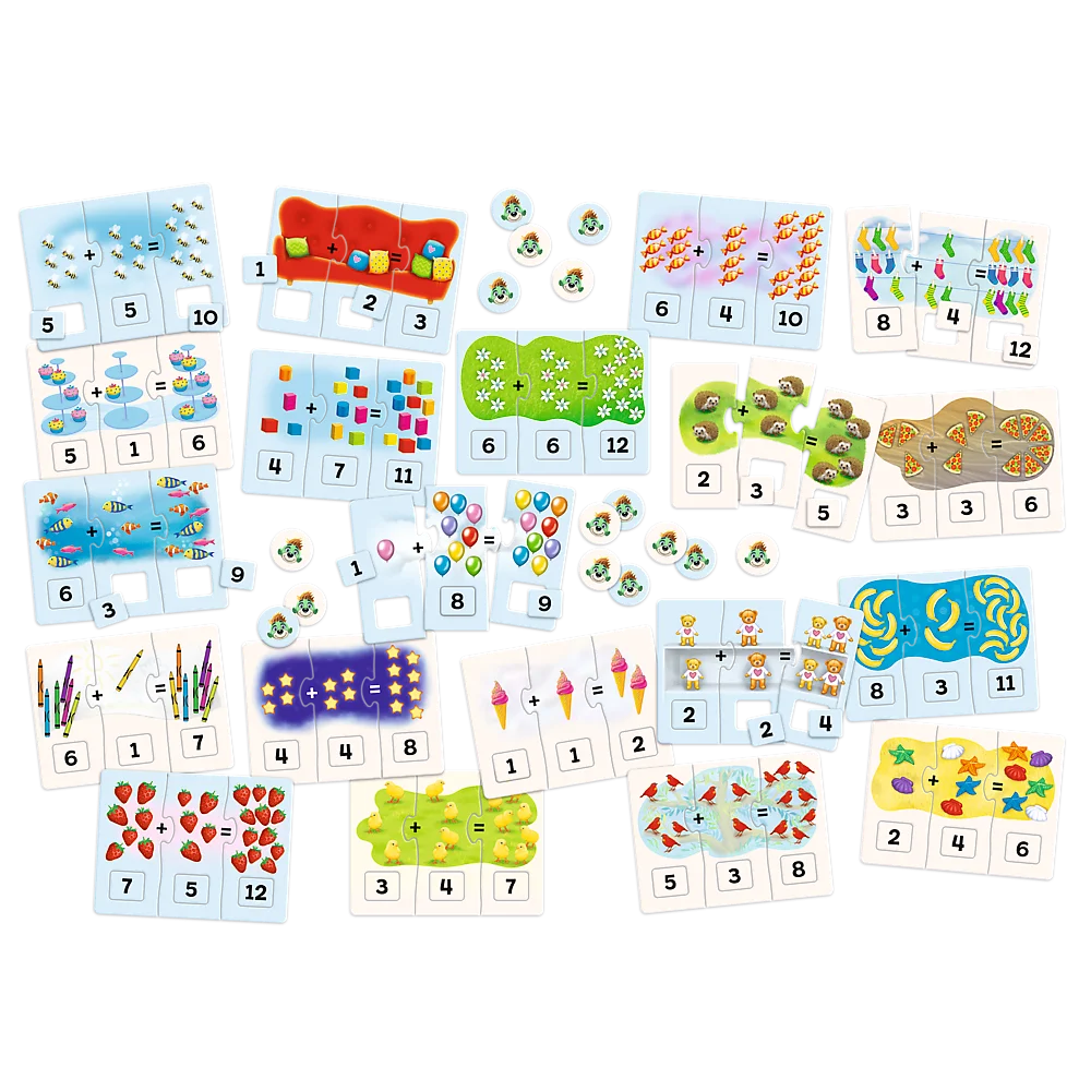Dodawanie to edukacyjna układanka dla przedszkolaków, która w przyjazny sposób wprowadza dzieci w świat dodawania. Poprzez zabawę maluchy uczą się rozpoznawać cyferki i ich dodawania do 12. Gra rozwija pamięć, pobudza zdolności matematyczne oraz spostrzegawczość. To doskonały sposób na połączenie nauki z radością odkrywania zasad dodawania!