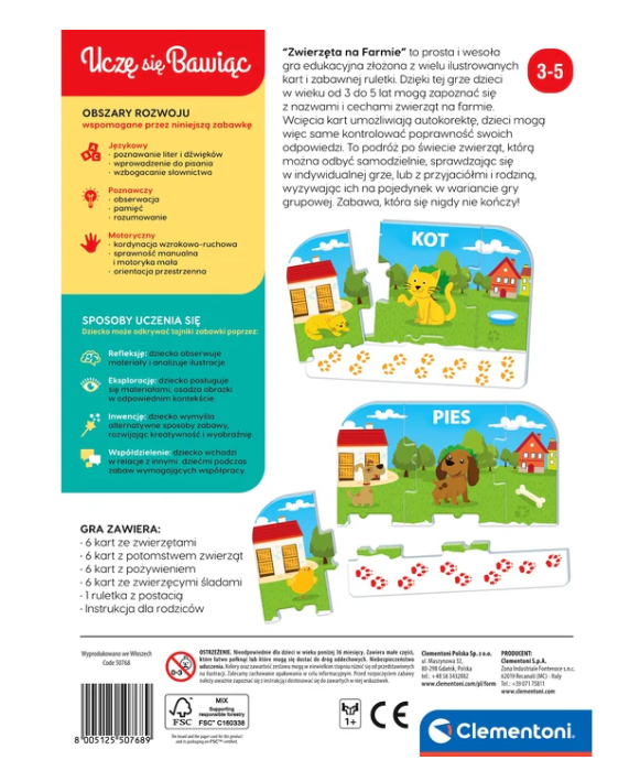 Gra edukacyjna Zwierzęta Na Farmie Uczę się Bawiąc Język Polski Clementoni 50768