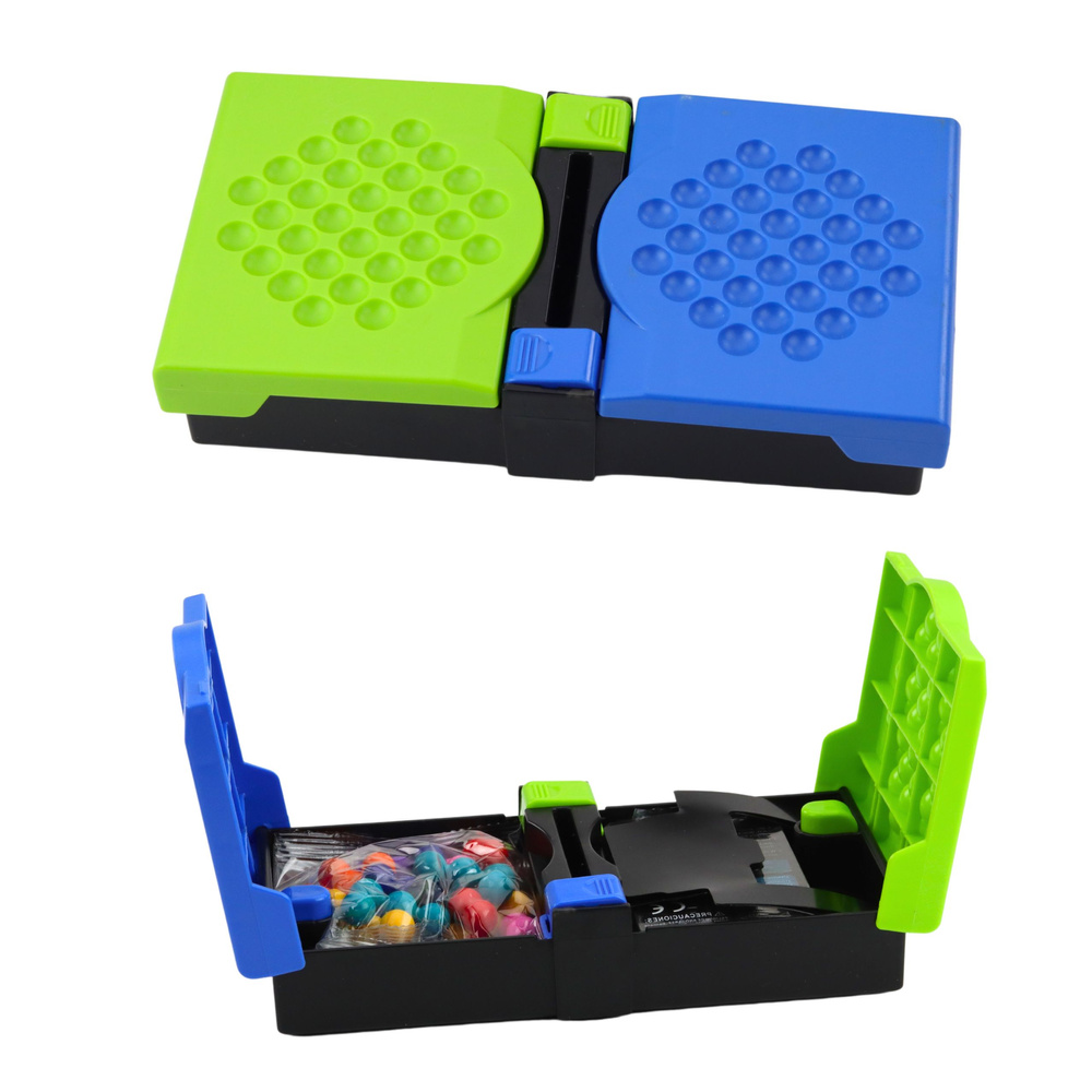 Gra edukacyjna Kulki to doskonały sposób na połączenie nauki ze świetną zabawą. Dzięki prostym zasadom i kolorowym elementom, zabawka wspiera rozwój koncentracji, koordynacji ręka–oko oraz zdolności manualnych już u najmłodszych dzieci. Wystarczy wylosować jedną z kart, wsunąć ją w odpowiedni otwór planszy, a następnie – korzystając z kolorowych kulek – odwzorować wzór pokazany na ilustracji.