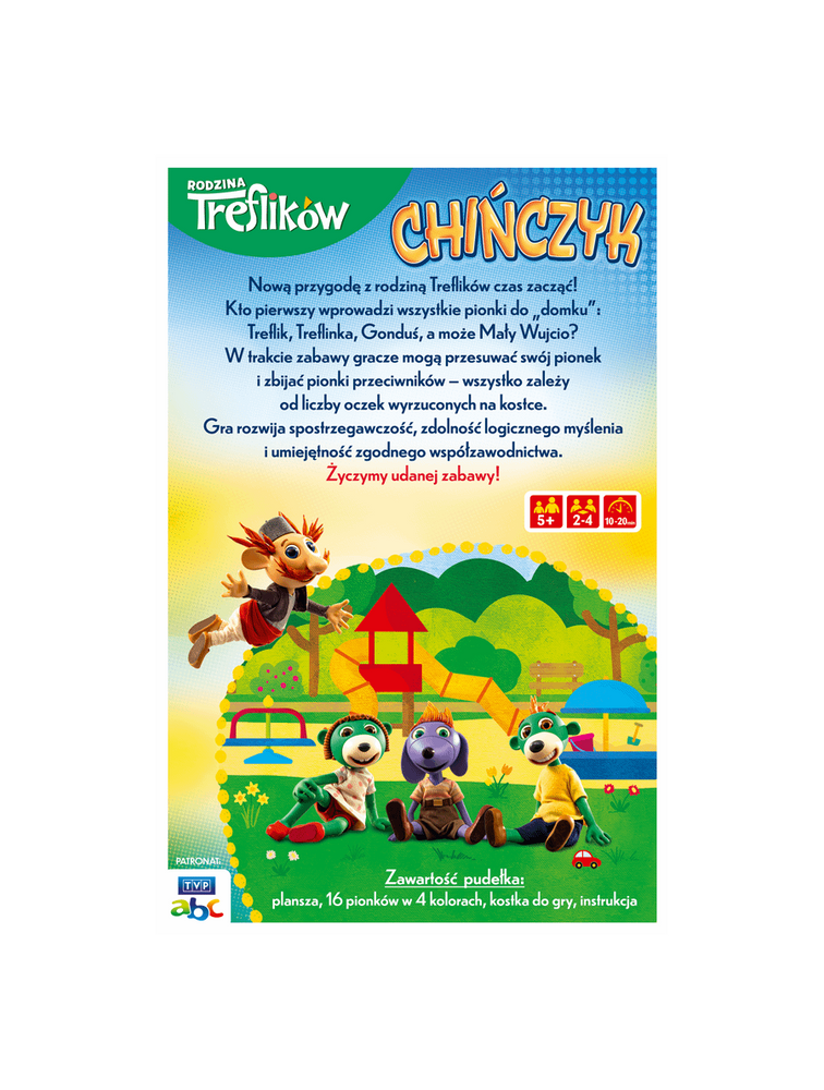 Gra Chińczyk z bohaterami bajki Rodzina Treflików dla dzieci powyżej 5 lat.
