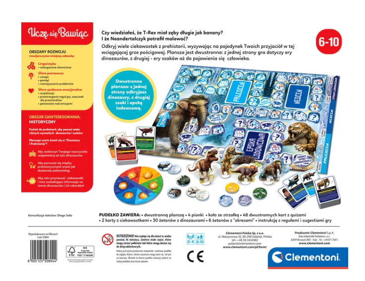 Gra planszowa Quiz Dinozaury i Prehistoria Epoka Lodowcowa Uczę się Bawiąc Język Polski Clementoni 50804