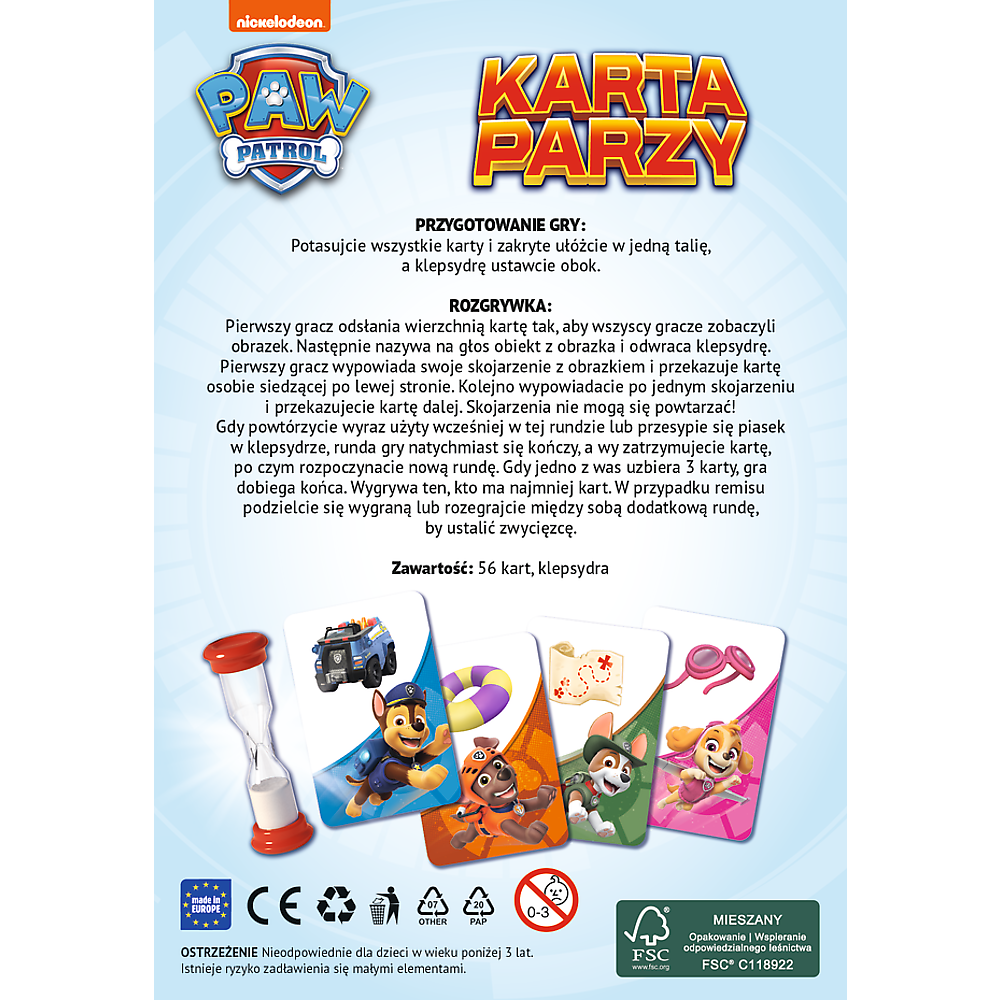 Gra karciana z bohaterami bajki Psi Patrol, w której liczą się szybkie skojarzenia i kreatywność graczy.