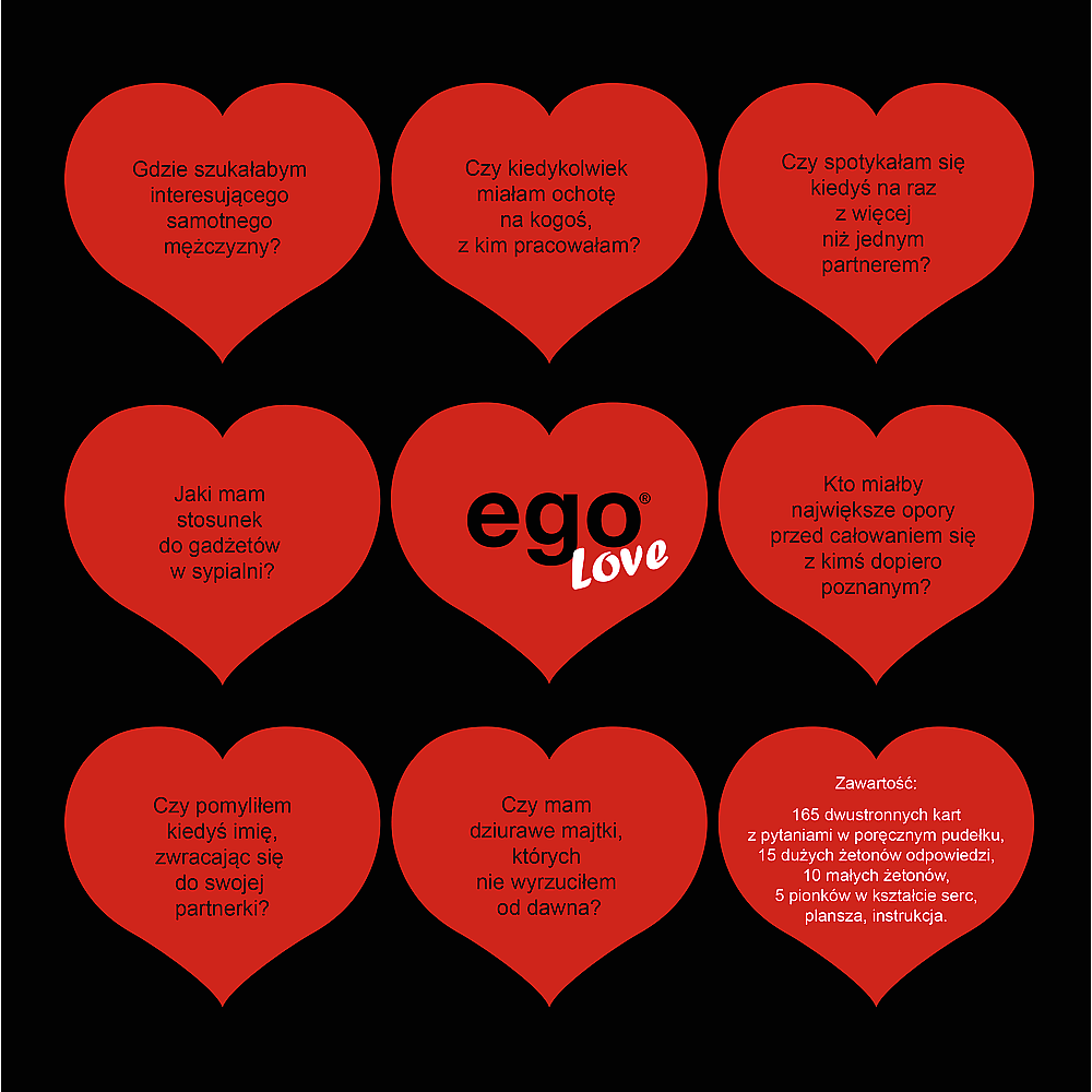 Trefl Ego LoveEGO Love to zupełnie kolejny tytuł w serii gier EGO, stanowiący świetną okazję do jeszcze lepszego poznania siebie i innych. To edycja stworzona specjalnie dla dorosłych. Zabawa polega na trafnym odpowiadaniu na niebanalne pytania na temat naszych znajomych, rodziny i przyjaciół. Jak dobrze znasz swoich znajomych i ich Ego? Podczas rozgrywki dowiecie się o sobie wielu nowych rzeczy, czasem naprawdę zaskakujących.Zasady tej towarzyskiej gry dla dorosłych są dziecinnie proste. Wylosuj jedno z intrygujących pytań i przeczytaj je na głos. Odpowiedz na nie w tajemnicy, wybierając jedną z podanych możliwości. Teraz pozostali gracze muszą odgadnąć Twój wybór. Obstawiają przy tym jeden lub dwa żetony – w zależności od tego, jak bardzo są pewni odpowiedzi. Wygrywa ten, kto zdobędzie najwięcej żetonów i najlepiej poznał swoich przyjaciół.Wyzwanie Ego polega na udzieleniu szczerej odpowiedzi na pytanie dotyczące samego siebie i swoich poglądów. To zadanie może okazać się trudniejsze niż myślisz… Zdobędziesz się na szczerość, czy wprowadzisz przeciwników w błąd?EGO Love to emocjonująca gra towarzyska, której celem jest udzielenie poprawnej odpowiedzi na pytania z kart i zebranie jak największej ilości małych żetonów.Cechy gry:• Gra quizowa z pytaniami dotyczącymi graczy• Proste zasady• Gra towarzyska, imprezowa Gra rozwija:• Relacje z innymi• Samoświadomość i szczerość• Zdolności komunikacyjneWystaw swoje ego na próbę! Podejmij wyzwanie gry z serii Ego! Sprawdź jak dobrze znasz samego siebie i pozostałych graczy.Poznaj Gry Trefl i podziel się radością z rozgrywki.Gry planszowe to doskonały prezent z okazji urodzin, Dnia Dziecka lub pod choinkę. Świetnie sprawdzą się podczas spotkania towarzyskiego oraz chwil spędzanych w gronie rodzinnym. Zawartość pudełka:• 165 dwustronnych kart z pytaniami• 15 żetony do oznaczania odpowiedzi• 10 małych żetonów• 5 pionków do gry• plansza• instrukcjaWymiary pudełka: 260x260x80Ilość graczy: 2-5Średni czas rozgrywki: 15-20minWiek: 18+