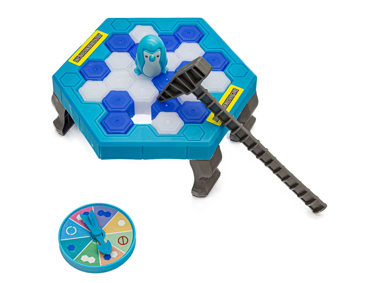 Zestaw zawiera koło wskazujące na bryłki lodu w kolorze niebieskim, białym, losowym bądź utratę kolejki. Po zakręceniu koła - młotkiem musimy strącić bryłę w wylosowanym kolorze.