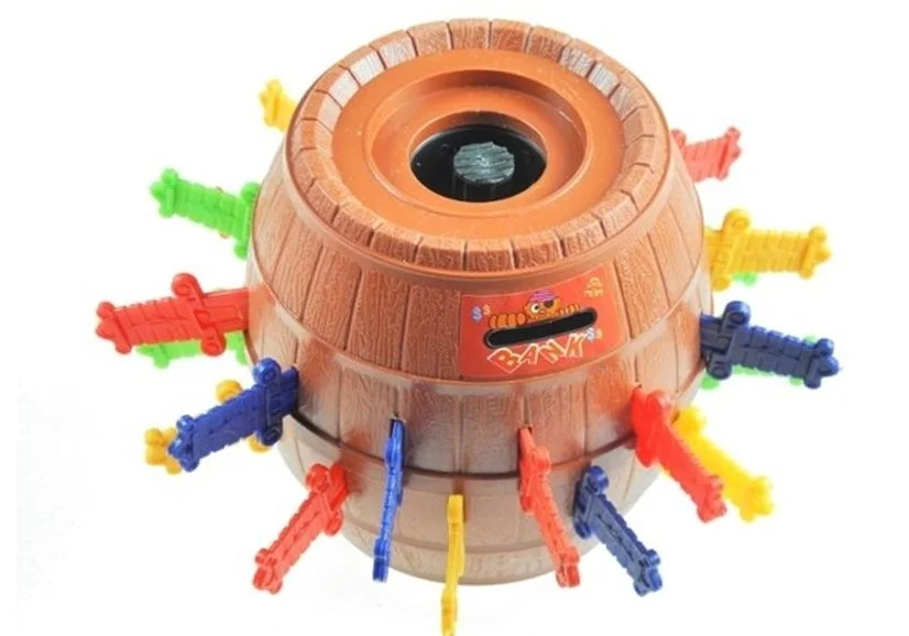 Na czym polega gra? Jej zasady są bardzo proste, zrozumieją je nawet najmłodsi z graczy. Pirata należy umieścić w beczce, następnie przekręcić nim kilkukrotnie, by zmieniło się jego ustawienie. Następnie uczestnicy wkładają w otwory beczki sztylety w taki sposób, by nie ukłuć pirata. Gdy to nastąpi, nasz bohater wyskoczy z beczki, a gra się zakończy. Całej frajdzie towarzyszy ogromne napięcie i dreszczykemocji - podczas wkładania kolorowych sztyletów w otwory beczki trzeba być bardzo skupionym i zwinnym.