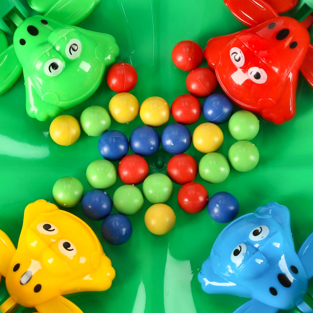 Jak grać? To proste! Każdy gracz wybiera swoją żabkę, a następnie wsypuje kulki na planszę. Celem jest złapanie jak największej liczby kulek, wciskając listki. Po zakończeniu rundy podliczcie zdobyte kulki – zwycięża ten, kto ma ich najwięcej!