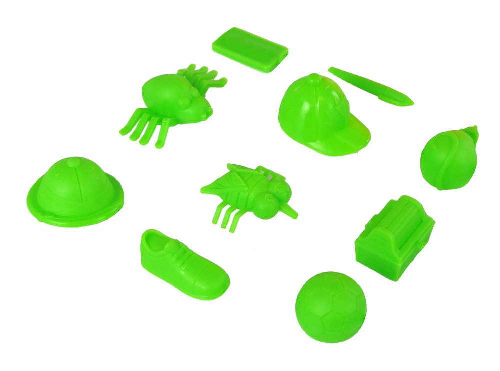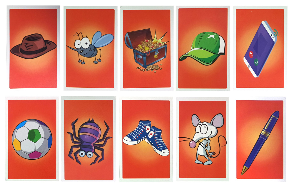 ( pióro, czapka, myszka, buty, piłka, pajak, skrzynia skarbów, telefon, komar, kapelusz)