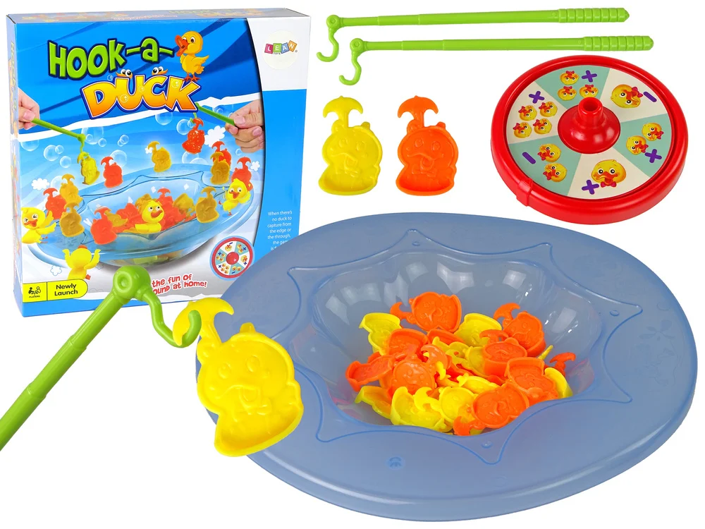 Prezentowana gra zręcznościowa jest wspaniałą propozycją dla cierpliwych maluchów, które uwielbiają wesołe i ciekawe zabawy, wymagające sprytu i skupienia. Zasady gry są bardzo proste. Należy umieścić staw na płaskim podłożu, na przykład na blacie stolika, a następnie ułożyć na obrzeżach planszy osiem kaczek dookoła — resztę wrzucić do stawu. Każdy zawodnik kręci kołem losującym, by dowiedzieć się, jaki będzie jego kolejny krok. Jeśli złowiona kaczka wpadnie do stawu albo na podłogę, gracz traci szansę. Gra kończy się, gdy w środku stawy nie będzie już żadnej kaczuszki do złowienia. Wygrywa osoba, która wyłowiła ostatnią z nich. Zabawę utrudnia chwiejący się podczas łowienia kaczek staw.