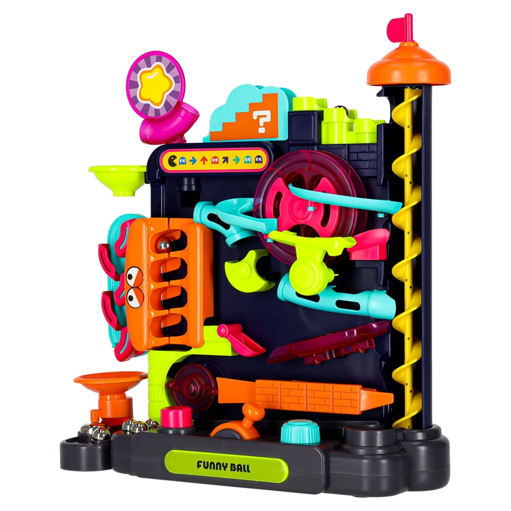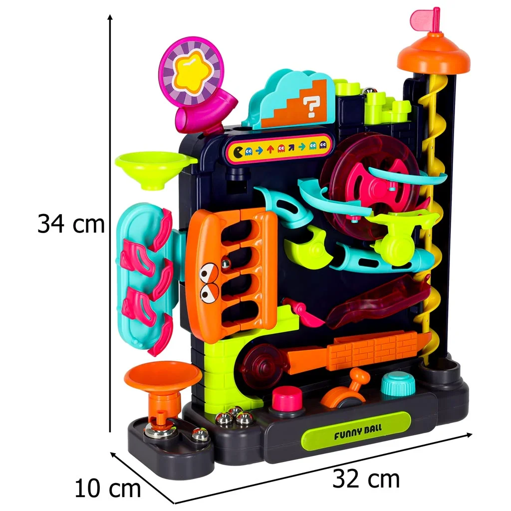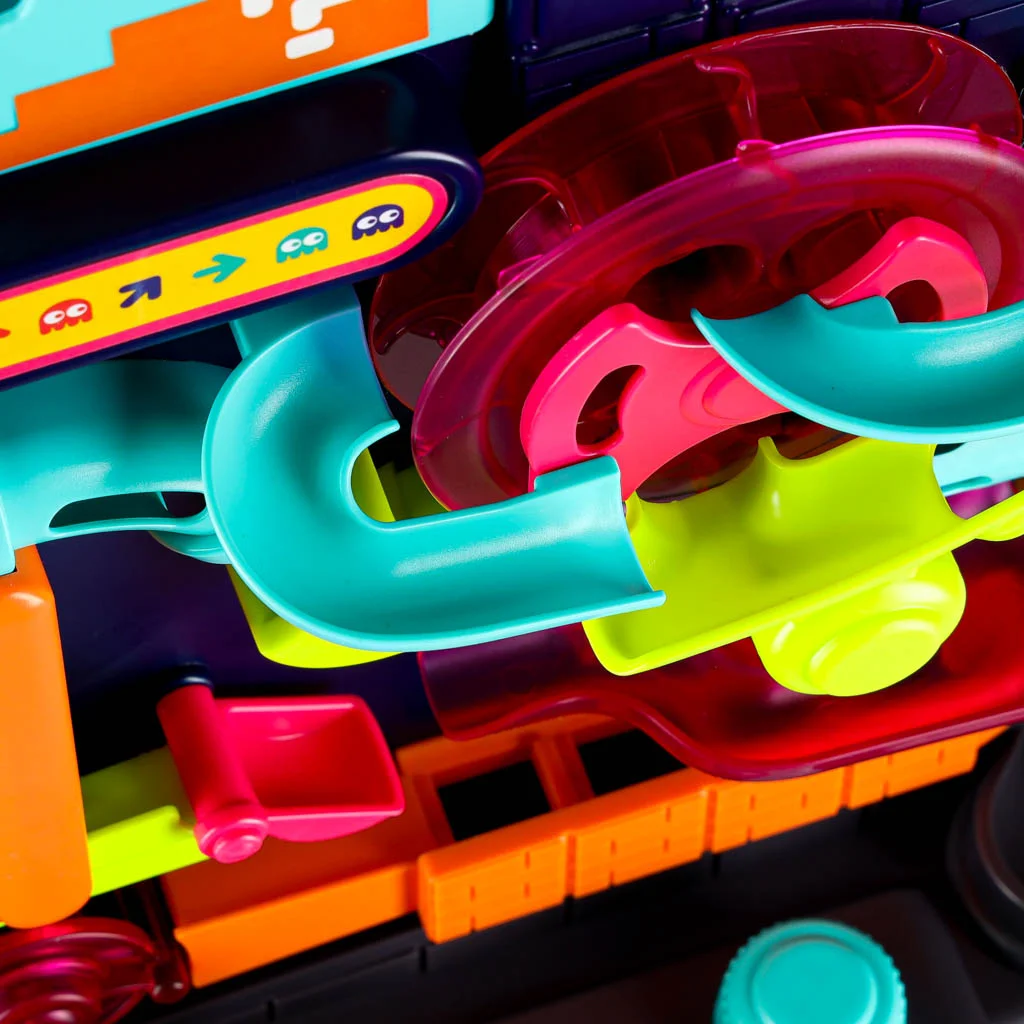 Poszczególne elementy toru reagują na ruchy pokręteł oraz dźwigni, co sprawia, że gra jest nie tylko wciągająca, ale również pełna wyzwań. Celem jest przeprowadzenie kulek z punktu startowego na metę.