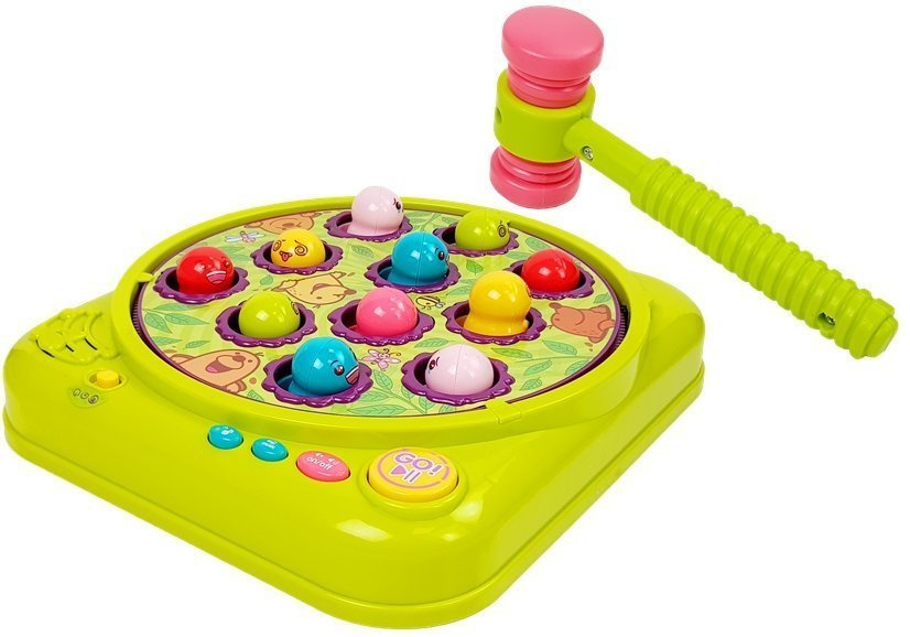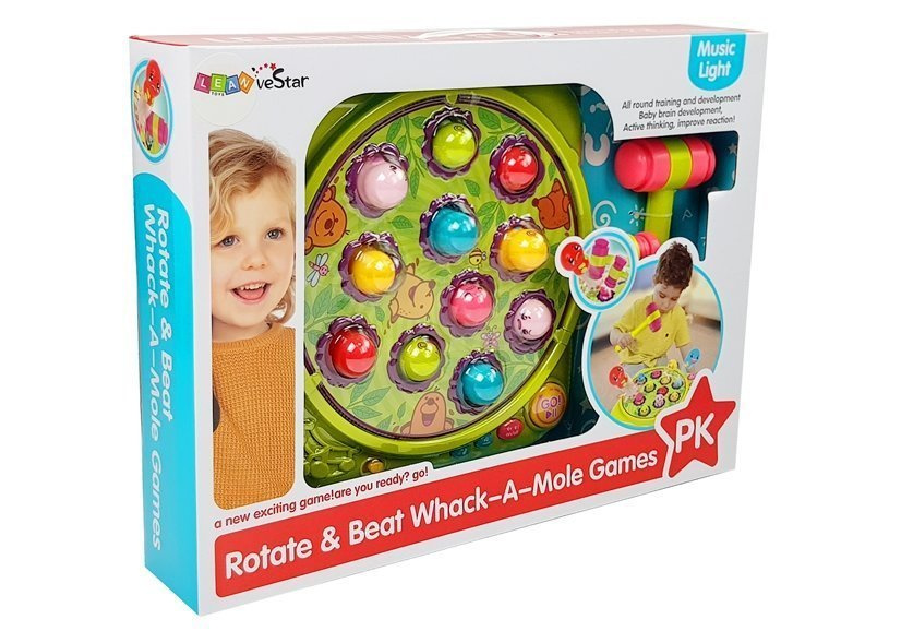 Na tarczy znajduje się 11 kretów. Po wciśnięciu przycisku GO, plansza obraca się. Można regulować jej tempo za pomocą suwaka, szybciej - wolniej. Kreciki wychodzą z dziury i się chowają. Twoim zadaniem jest je uderzyć w głowę, za pomocą gumowego młotka. Dobre uderzenie liczy się wtedy jak chomik wyskoczy z dziurki poza plansze.