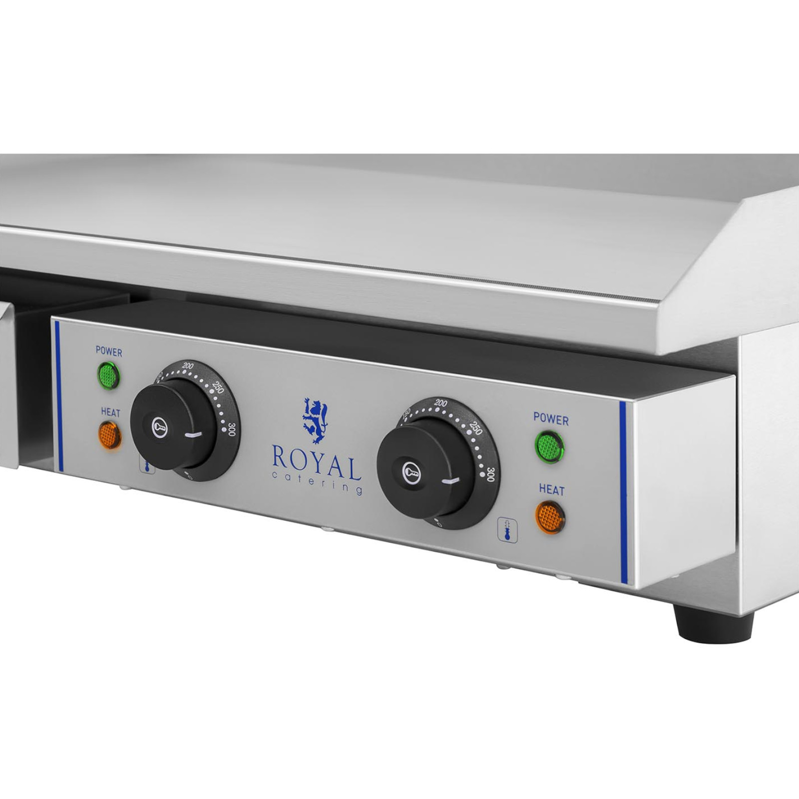 Grill wyposażony jest w wyjmowaną szufladkę na nadmiar tłuszczu, którą można myć w zmywarce. Praktyczny rowek w płycie grzewczej ułatwia odprowadzanie tłuszczu, co przyczynia się do przygotowania mniej kalorycznych potraw. Wysokie ranty chronią przed pryskającym tłuszczem, a solidna stal nierdzewna zapewnia trwałość urządzenia.