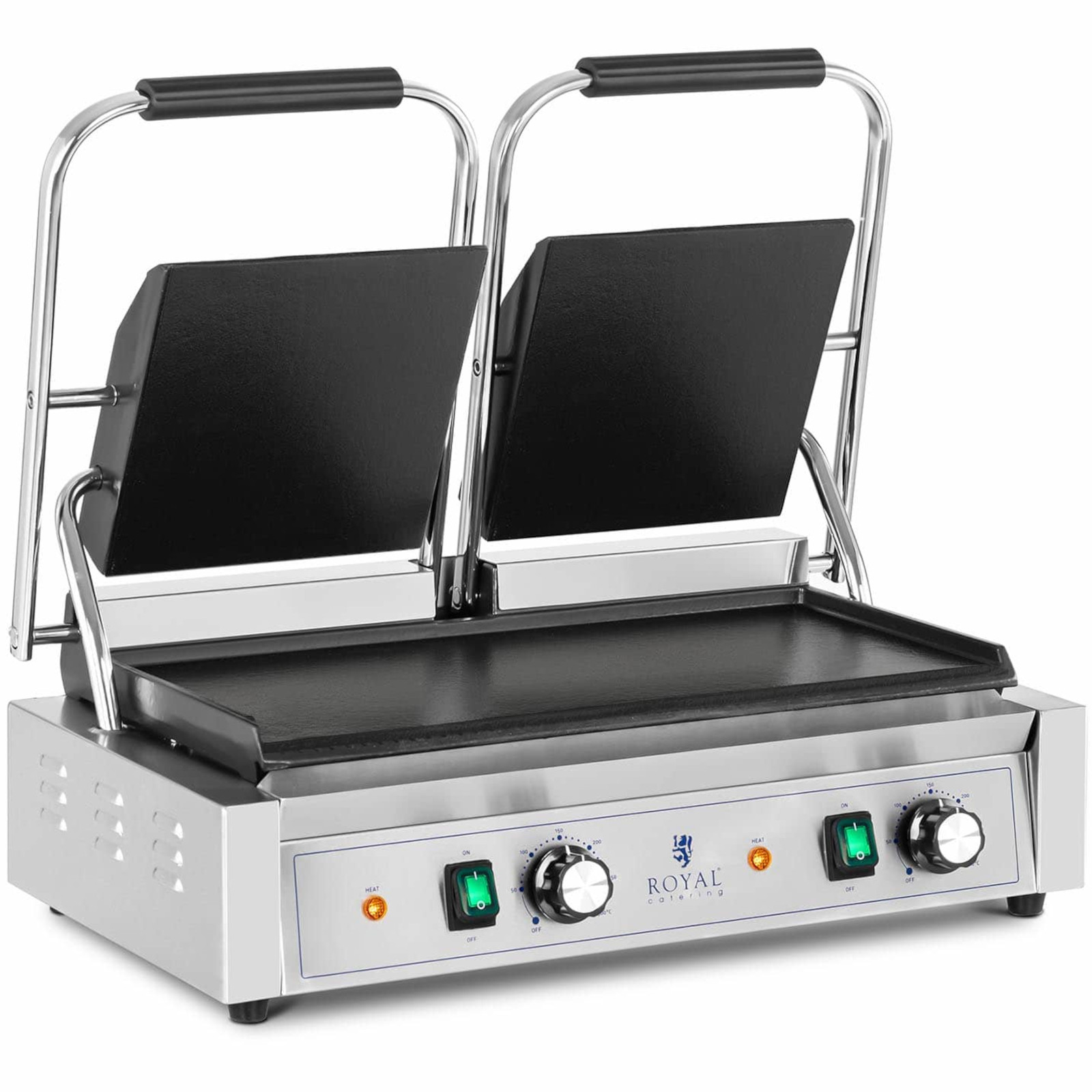 Grill kontaktowy marki Royal Catering to idealne rozwiązanie dla profesjonalnych kuchni oraz domowych miłośników gotowania. Dzięki mocy 3600 W, urządzenie szybko osiąga odpowiednią temperaturę, co przyspiesza proces grillowania. Zakres temperatur od 50 do 300°C pozwala na dostosowanie ustawień do różnych rodzajów potraw.