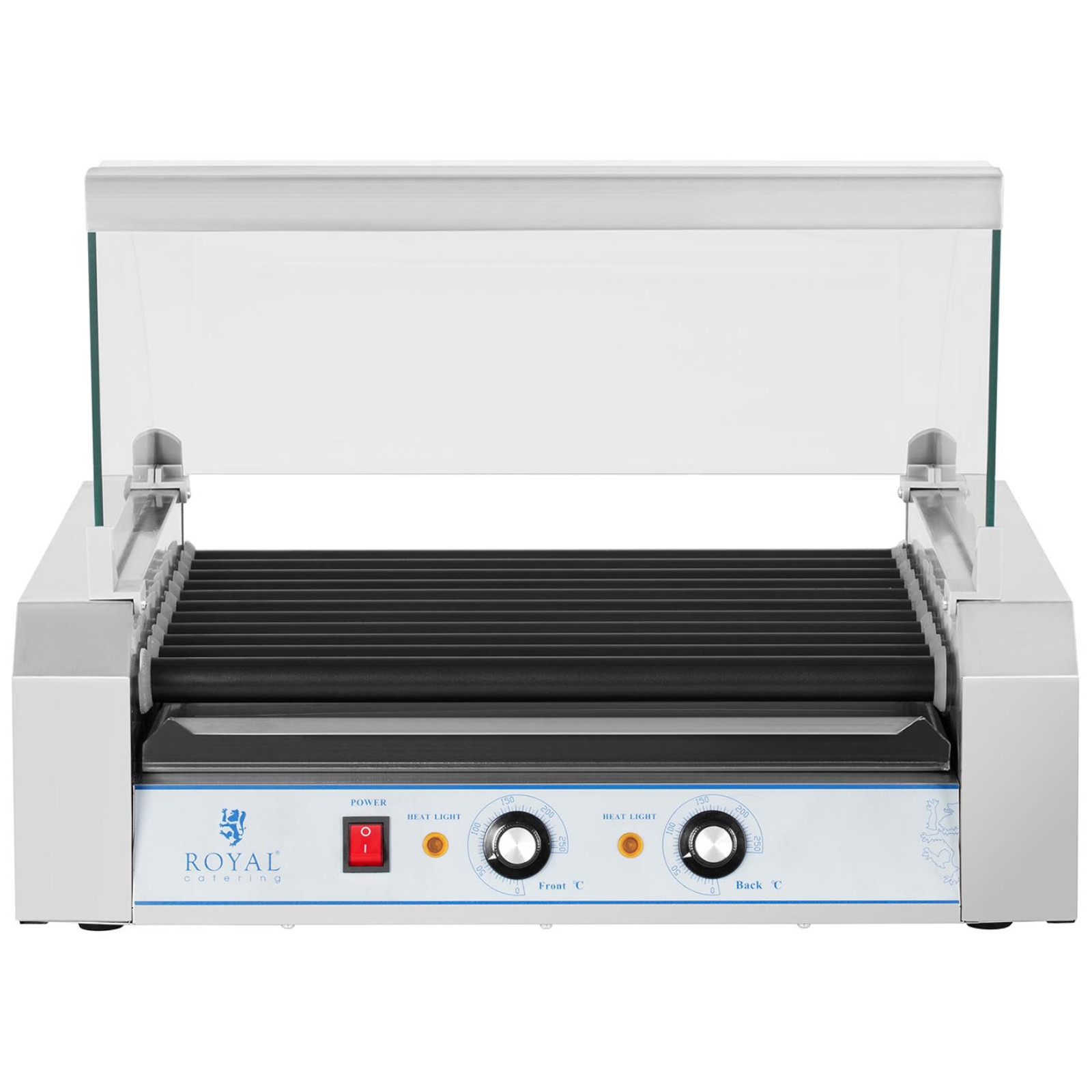 Rolki grzewcze (11 szt.) wykonane są ze stali pokrytej wysokiej jakości teflonem, co zapobiega przywieraniu produktów oraz ułatwia ich czyszczenie. Dwie oddzielnie sterowane strefy grzania pozwalają na równoczesne grillowanie i podgrzewanie kiełbasek. Urządzenie wyposażone jest w lampki kontrolne, które informują o mocy oraz gotowości do pracy.