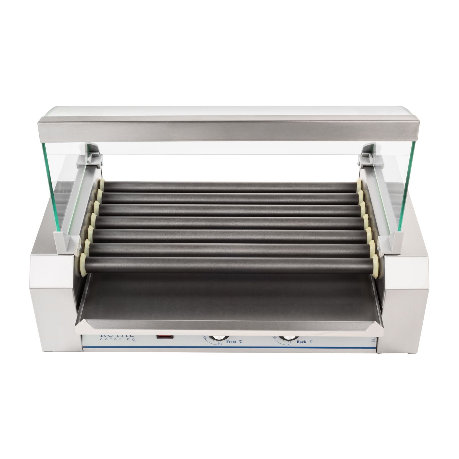 Wyposażony w stalowe rolki grzewcze pokryte teflonem, grill zapobiega przywieraniu jedzenia i ułatwia czyszczenie. Dzięki płynnej regulacji temperatury, można precyzyjnie dopasować warunki przygotowania potraw. Dwie oddzielne strefy grzania umożliwiają szybkie opiekanie oraz utrzymywanie w cieple już gotowych kiełbasek.