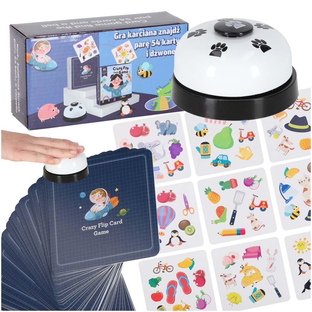 Gra na spostrzegawczość znajdź parę Crazy Flip 54 karty i dzwonek