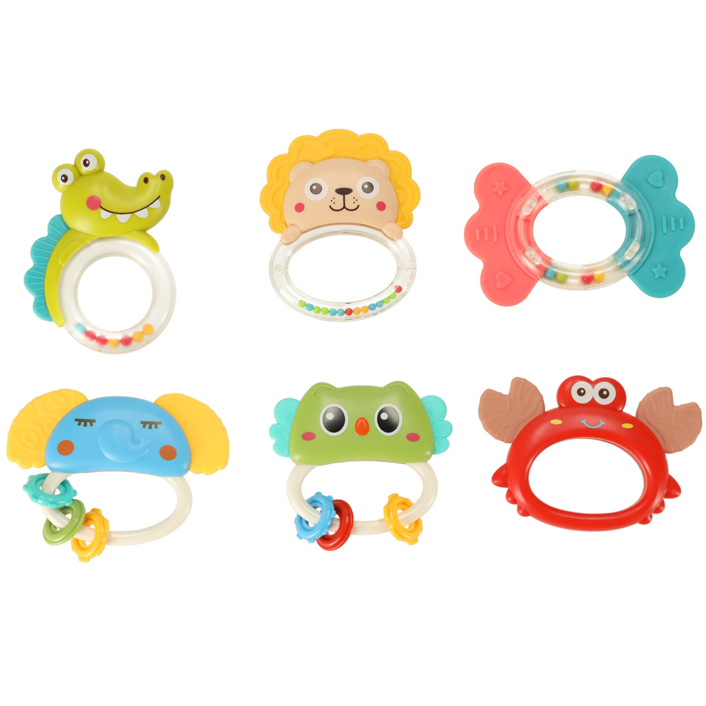 Zestaw składa się z sześciu unikalnych gryzaków i grzechotek, które zachwycą każde dziecko. Różnorodność kolorów i kształtów stymuluje ciekawość maluszka, a miękkie brzegi zapewniają bezpieczeństwo podczas ząbkowania.