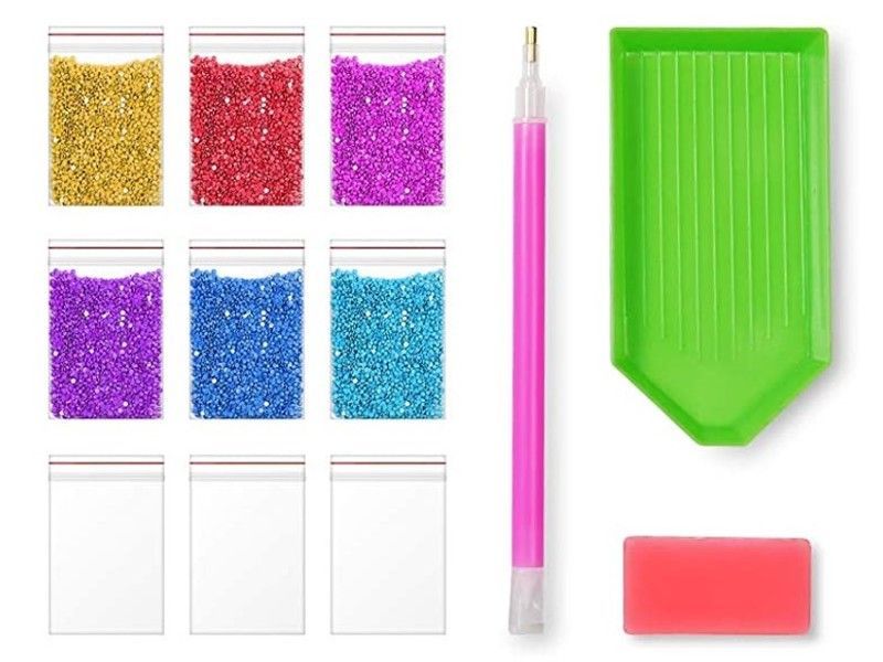 Oferowany zestaw zawiera wszystkie niezbędne elementy do wykonania gotowej układanki. Zabawa polega na tym aby odpowiednimi diamencikami wyłożyć ponumerowane płótno - tworząc w ten sposób dzieło sztuki - obraz.
